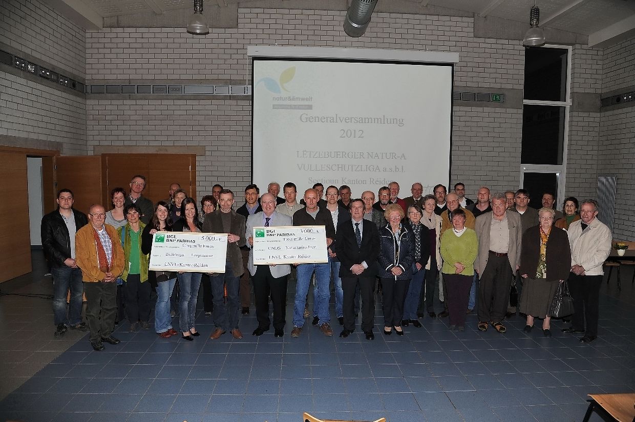 Mit ihren 1410 Mitgliedern ist die 1985 gegründete Sektion der „ Lëtzebuerger Natur- a Vulleschutzliga“ Kanton Redingen die größte Sektion des Großherzogtums. Seit 27 Jahren ist man stets bemüht, sich ganz für den Erhalt der Natur mit ihren Lebewesen einzusetzen. Dass das Jahr 2011 für die Sektion Kanton Redingen in puncto Natur- und Vogelschutz von großer Bedeutung war, konnten die Naturfreunde neulich anlässlich der diesjährigen und zugleich 27. Jahreshauptversammlung im Kulturzentrum in Rambrouch erfahren. Eingangs dankte Sektions-Präsident Jos Wampach sämtlichen Instanzen, dem Vorstand mit allen Mitgliedern sowie der Gemeindeverwaltung Rambrouch für ihren Einsatz und ihre Unterstützung zum Nutzen von Umwelt und Natur im verflossenen Jahr. Im Anschluss an eine Schweigeminute, an der besonders an die vier bereits verstorbenen Vorstandsmitglieder gedacht wurde, befasste sich Jos Wampach mit den Vögeln, die man ohne zu übertreiben als Wunder der Natur bezeichnen kann. Er wies auch auf den Raubwüger als Vogel und die Lärche als Baum des Jahres 2012 hin. Zugleich erinnerte der Vorsitzende an die jährliche Beteiligung von maximal 3 000 Euro, die Gemeinden im Zusammenhang mit einem konkreten Naturschutzprojekt im Kanton Redingen zugutekommen.