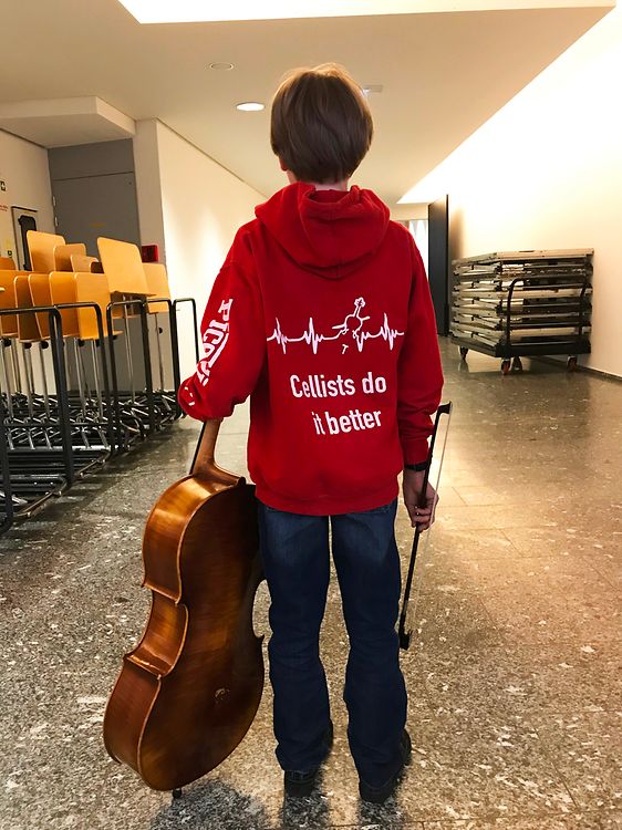 Une vingtaine d’élèves de la classe de violoncelle de Raju Vidali, accompagnés de percussions, s’en donnent à cœur joie dans un programme varié et éclectique.
