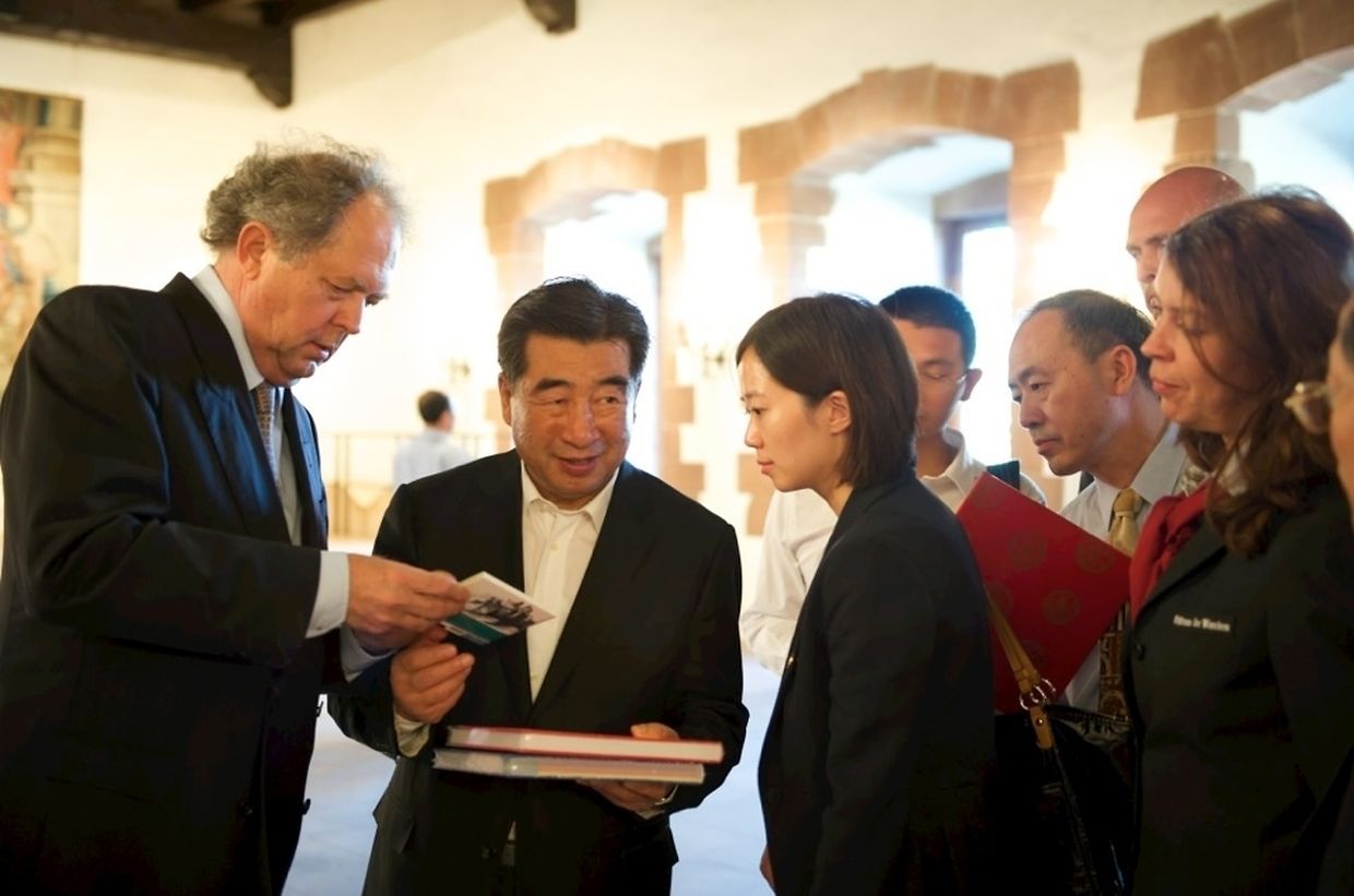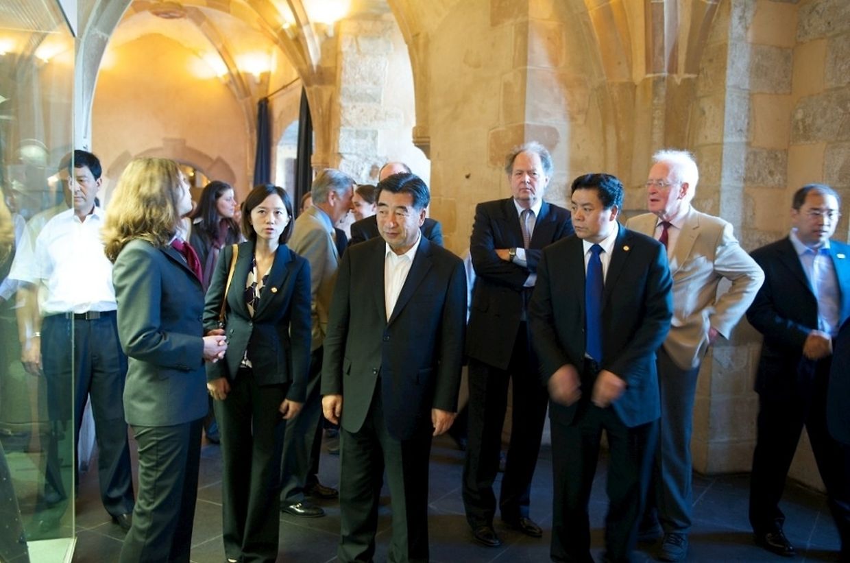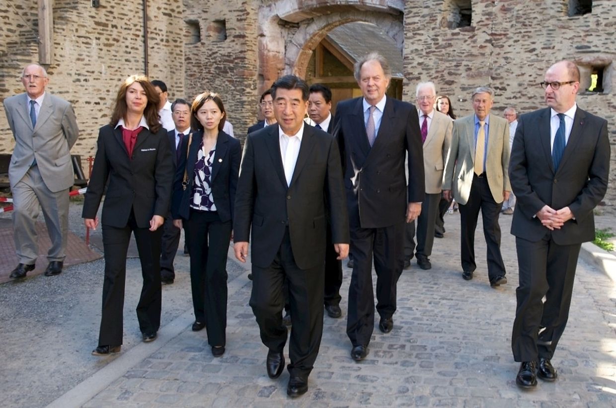 Die, von Nadine Haoues-Streff geführten Ehrengäste, zeigten sich sichtlich interessiert an der Geschichte und der Rekonstruktion der Burg. Im Anschluss an die Führung, trug sich der hohe Vertreter der Volksrepublik China in das goldene Buch des Schlosses ein.