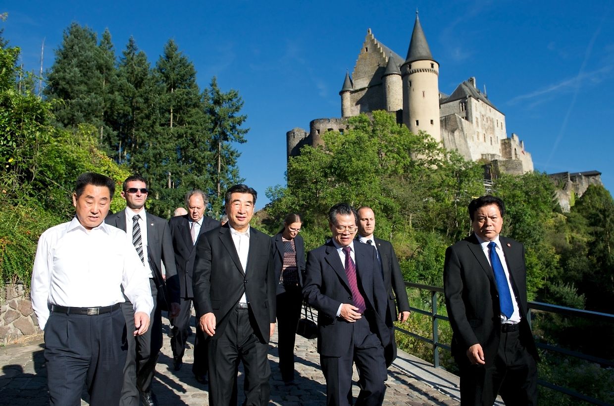 In Begleitung des chinesischen Botschafters in Luxemburg, Xianqi Zeng, und Vertretern des Auswärtigen Amtes wurde die Delegation vom Präsidenten der Viandener Schlossfreunde, René Steichen, vom Bürgermeister der Stadt Vianden, Marc Schaefer, sowie einer Delegation der Viandener Schlossfreunde am Fuße der Burg empfangen.
