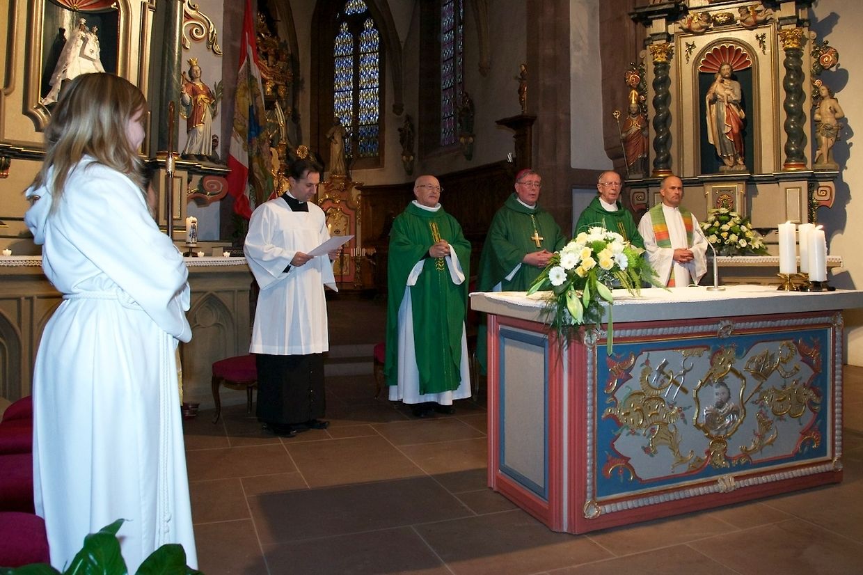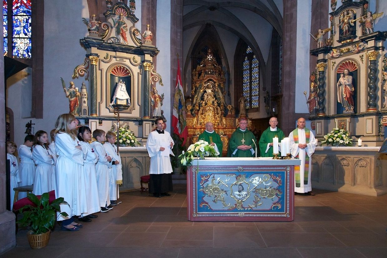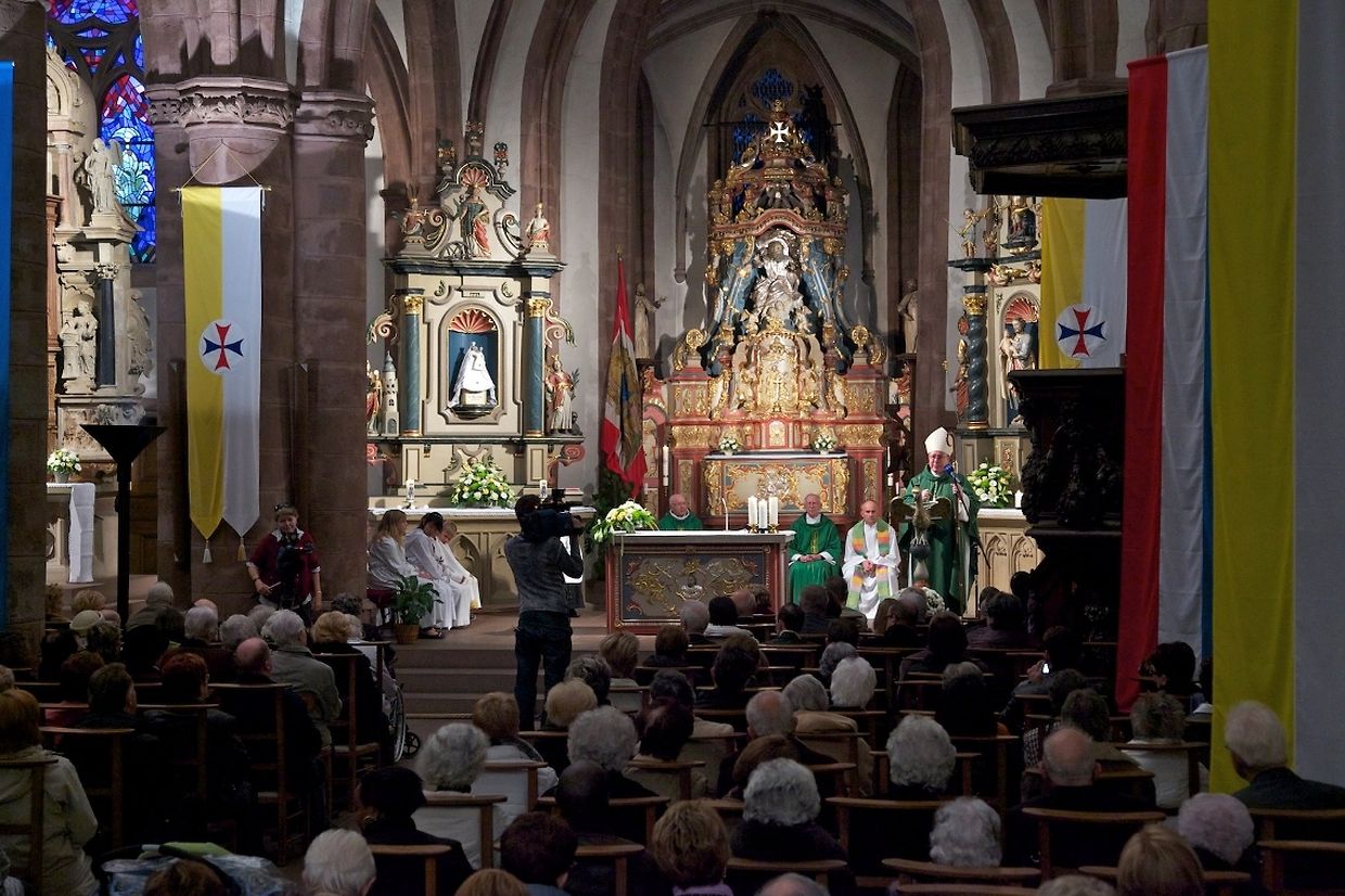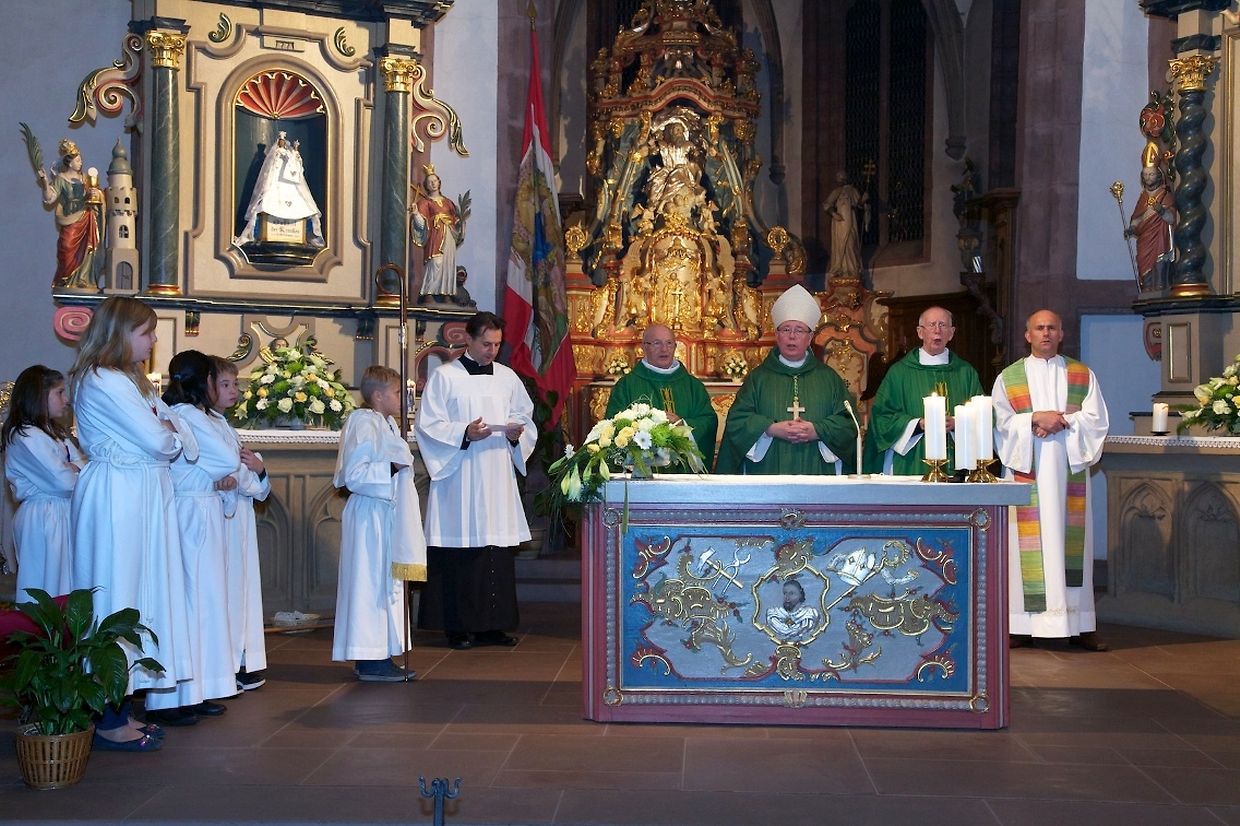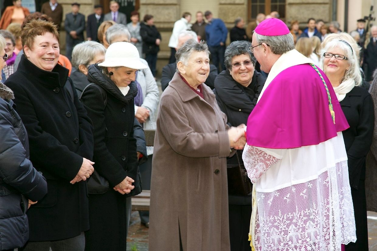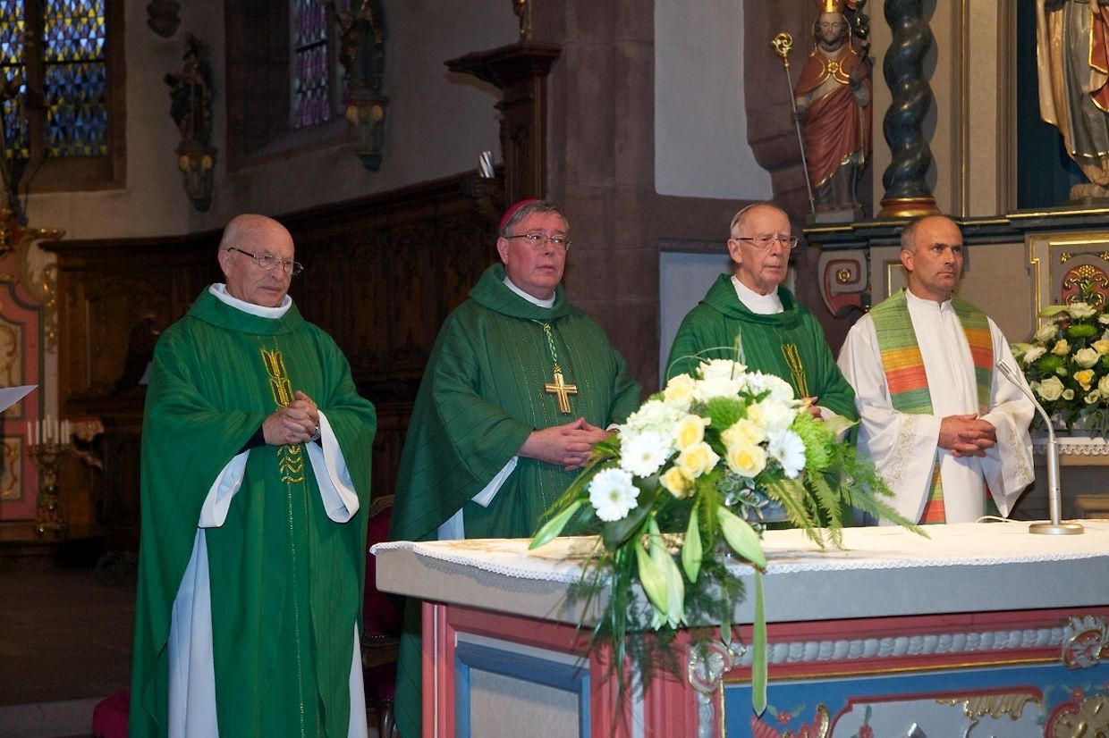 Vor dem Seitenportal der Trinitarierkirche hieß Félicie Scheidweiler Jean-Claude Hollerich anschließend im Namen des Pfarrverbandsrats willkommen, ehe der Erzbischof gemeinsam mit Dechant René Feltes und den geistlichen Mitbrüdern Léon Kirsch und Pedro De Sousa Pinto eine feierliche Bischofsmesse konzelebrierte.