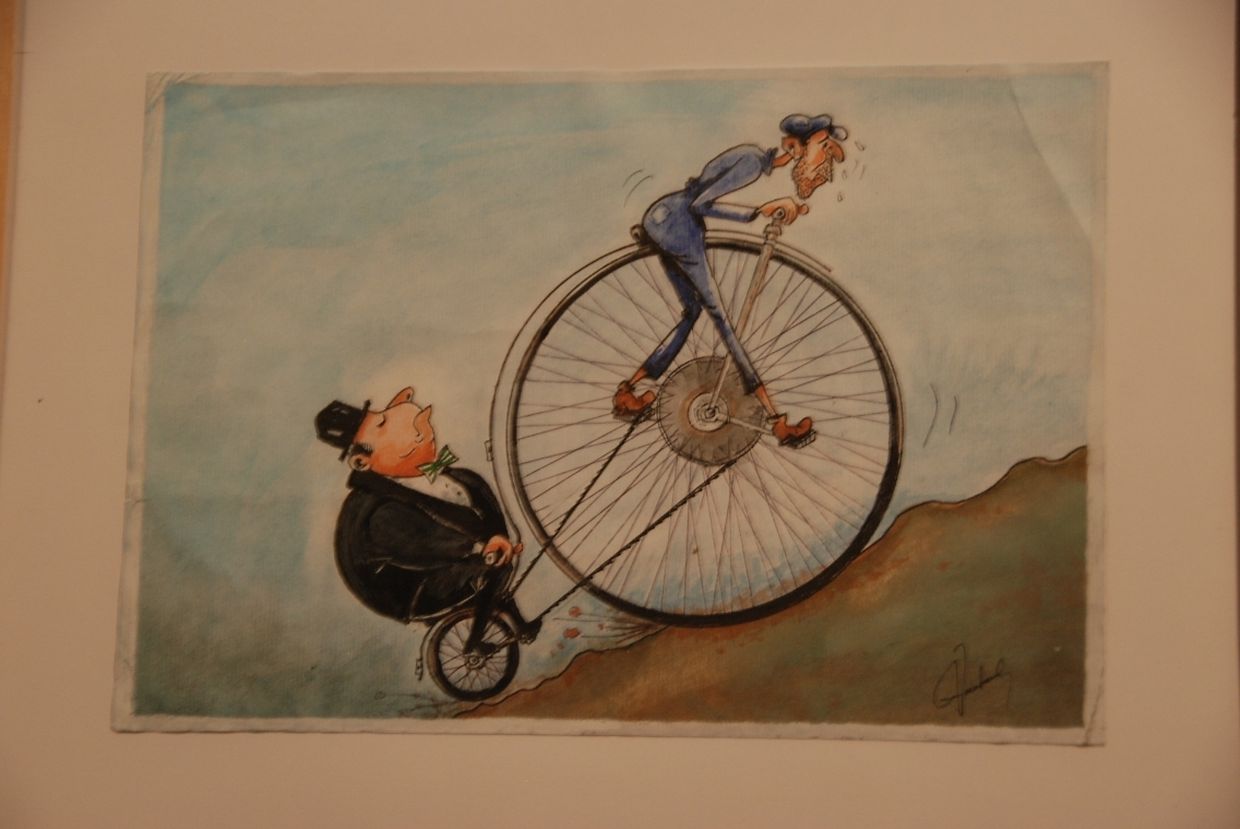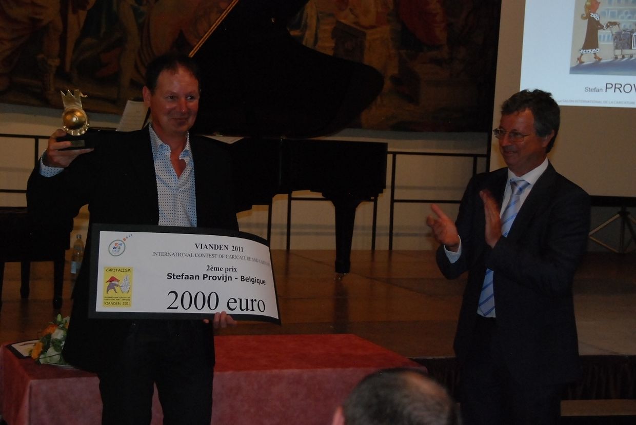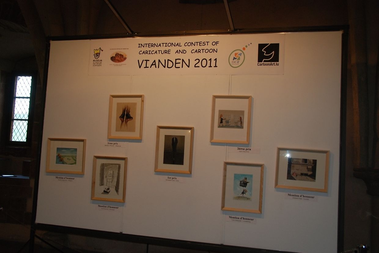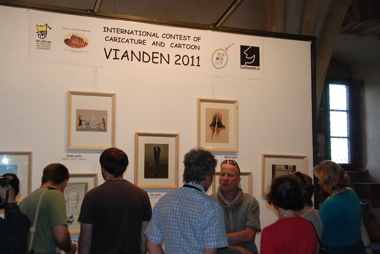 Beim Wettbewerb werden die Zeichner abwechselnd aufgefordert, seriöse und humorvolle Themen zu behandeln. Letztes Jahr standen Zeichnungen mit Ideen zu „L'homme au foyer“ im Mittelpunkt. 2011 wurden fast 1000 Karikaturen von rund 400 internationalen Zeichnern eingereicht. Für die Ausstellung im Rittersaal im Viandener Schloss wurden die 100 besten ausgewählt. Als Sieger ging der Italiener Alessandro Gatto hervor. Seine Karikatur zeigt einen Kapitalisten mit einem gleichgültigen Gesichtsausdruck. Die Krawatte seines Anzugs führt zu einem Tunnel, in dem Bergmänner hart arbeiten. „Der Kapitalist wird zum Symbol dieses Wirtschaftssystems“, erklärt Gatto. „Die Krawatte zeigt, dass es keine Grenze zwischen ihm und den Menschen, die für ihn arbeiten, gibt. Jedoch interessiert sich der Kapitalist nicht für die Arbeiter.“