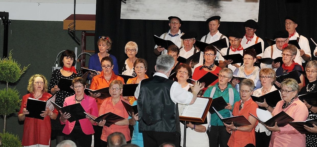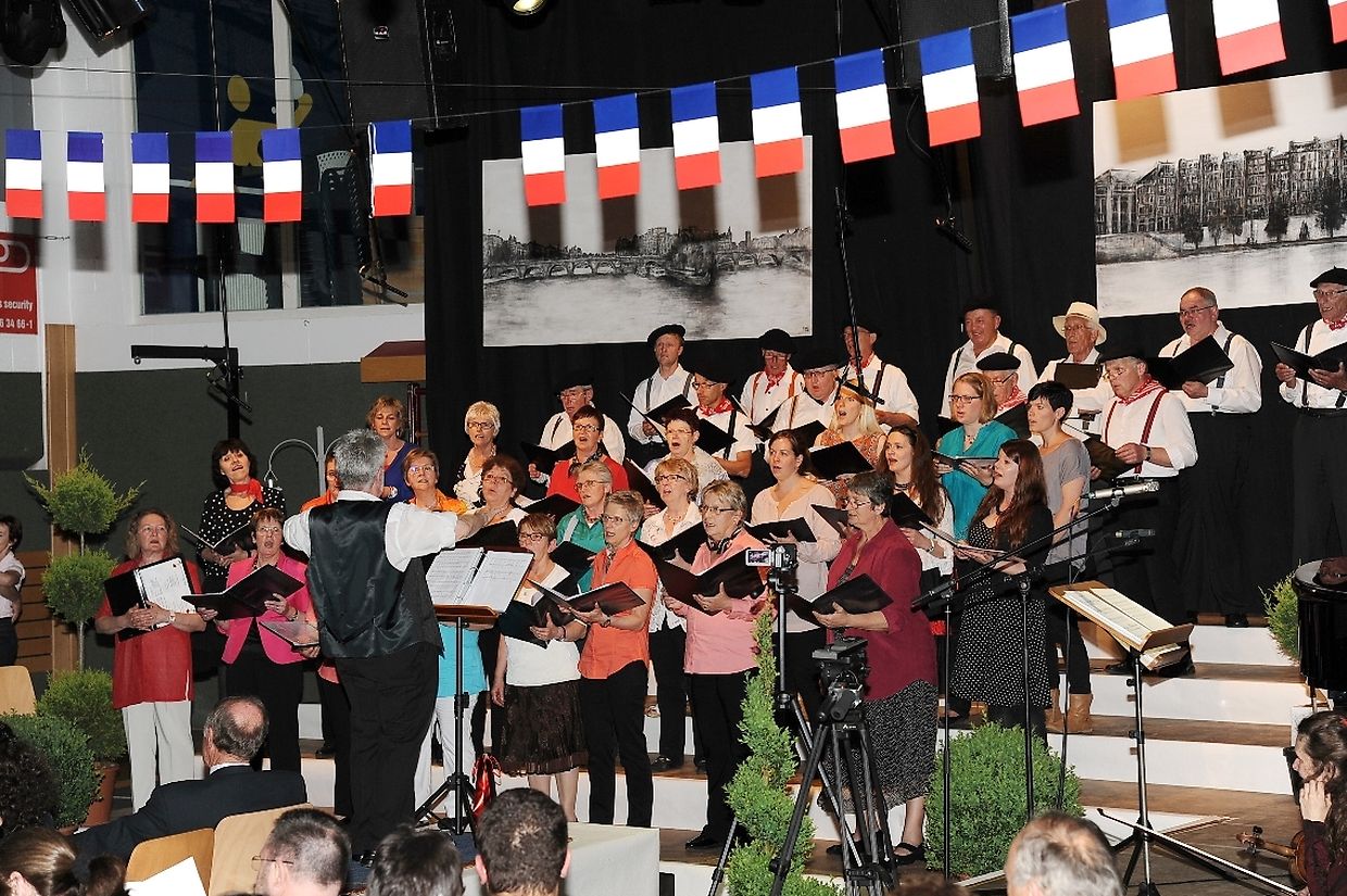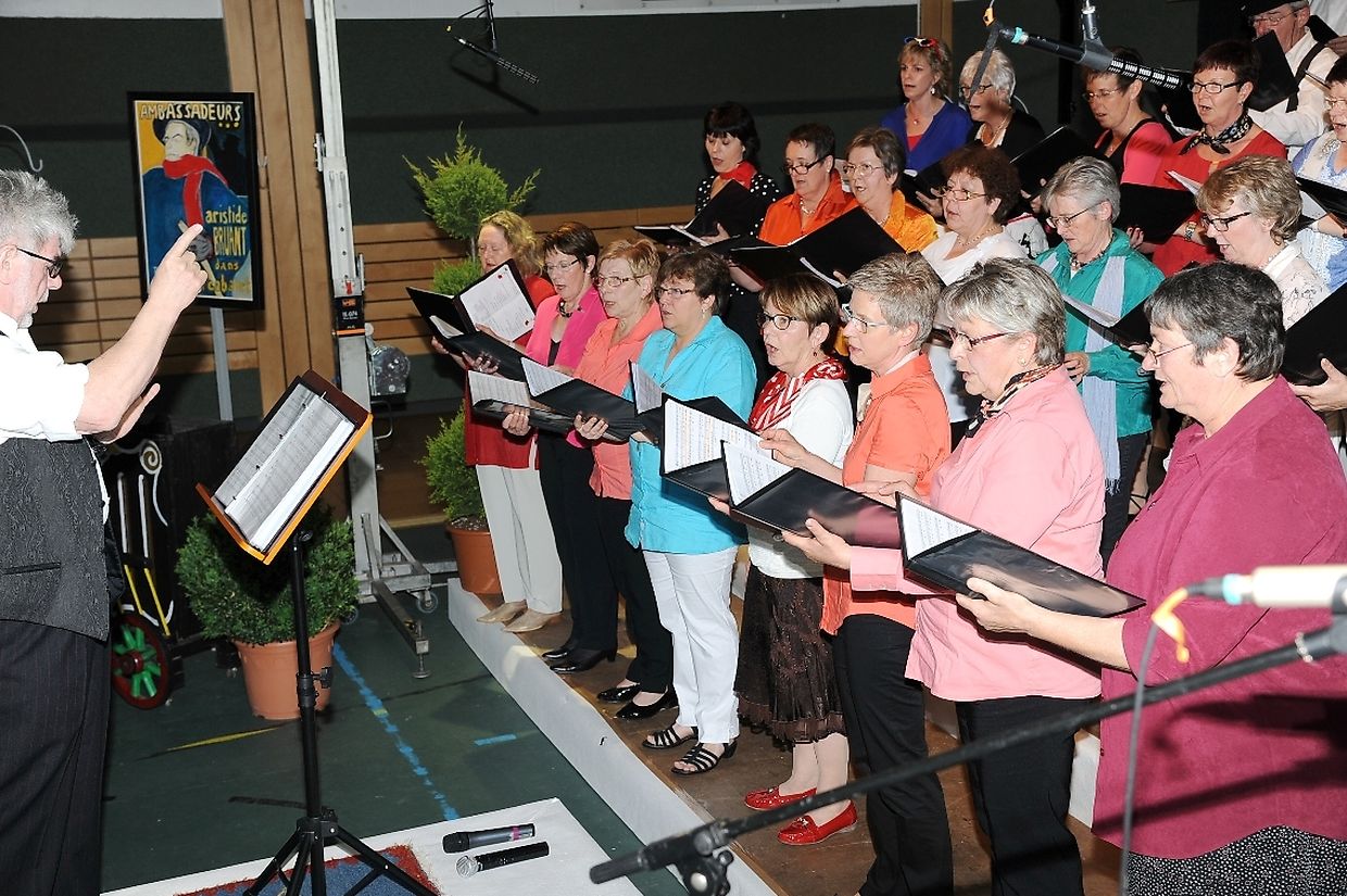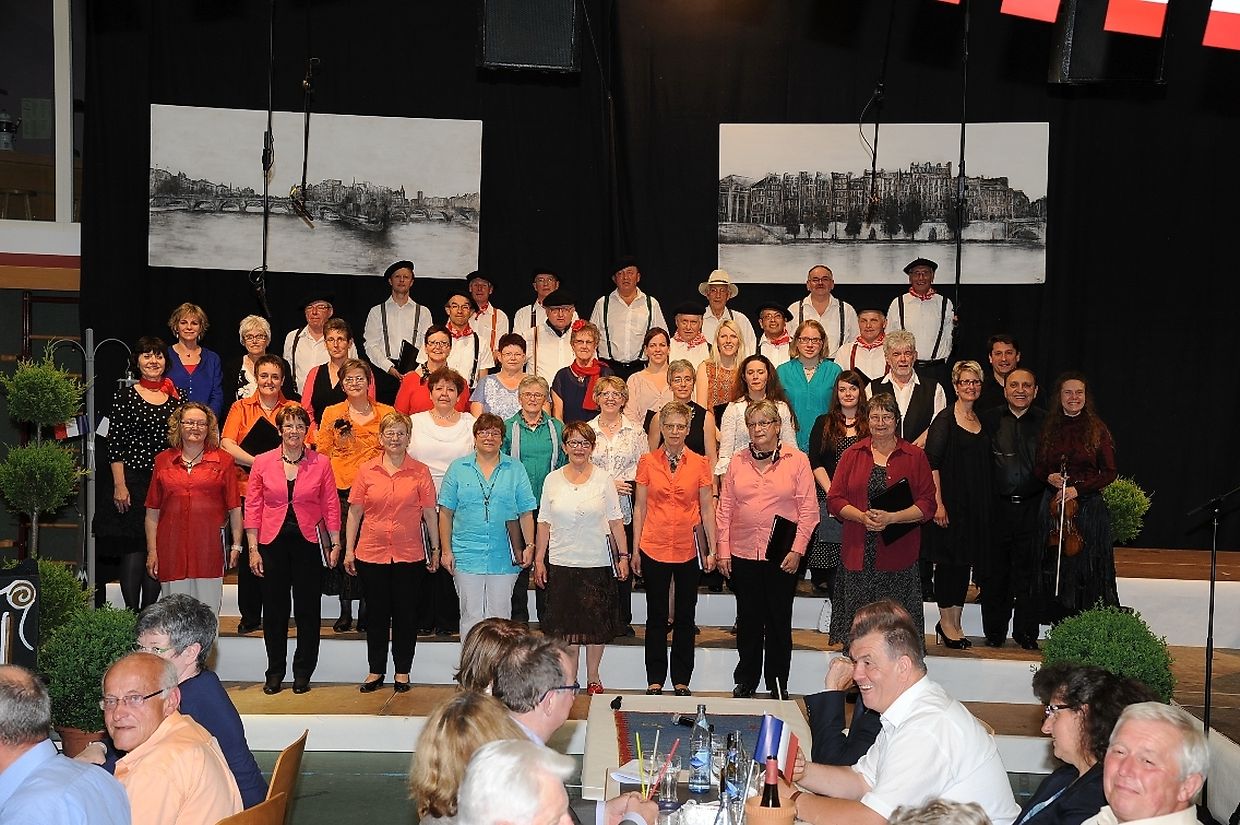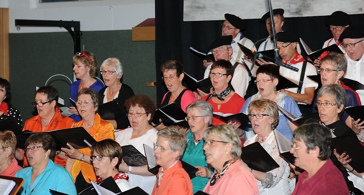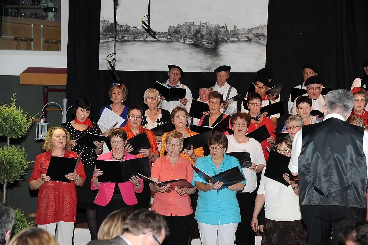 Mat franséische Chansons " à la carte" konnten d'Gesangveräiner vu Colmer- Bierg a Viichten zesumme mat hire Frënn ganz vill Gesangliebhaber op hirem Franséischen Owend e Mëttwoch, den 28. Mee an der Sporthaal zu Viichten iwerzeegen. Dese Concert stong ënnert dem Protektorat vun der Colmer a Viichtener Kulturkommissioun. Ënnert der Leedung vum Dirigent Henri Bissen sin ganz schéin a bekannt franséisch Lidder, wéi les Bales populaires, Etoile des neiges, l'important c'est la rose, les lacs du Connemara , Printemps du Charmeur bis hin zu Toutes les femmes sont belles, vun denen ronn 40 Sängerinnen a Sänger mat Bravour op eng professionell Manéier interprétéiert gin. Och d'Solistin Sylvie Schartz- Kips huet di zwee Lidder - Baccarole an Après un rève - mëschterhaft virgedroen. D'Sänger goufe begleet vum Caroline Plekkepoel a Sylvie Schartz- Kips um Keyboard, dem Janos Nadasi um Piano, dem Vania Lecuit op der Géi a vum Maurizio Spiridigliozzi um Akkordeon. Durch den flotten Owend den vun allen Uwiesenden mat vill Applaus honoréiert gouf, huet d'Marianne Kugener- Goethals gefouert. Wien sech dese Concert nach e Mol wëllt unhéieren, kann dat dese Samsdeg den Owend ëm 20 Auer am Kulturtzënter zu Colmer- Bierg mat erliewen (TEXT A FOTOEN: CHAREL REISER)
