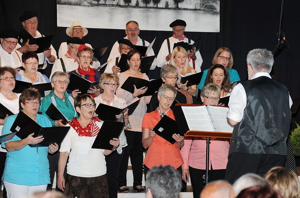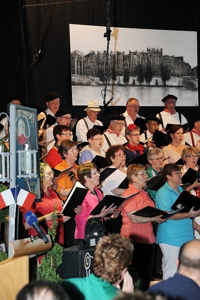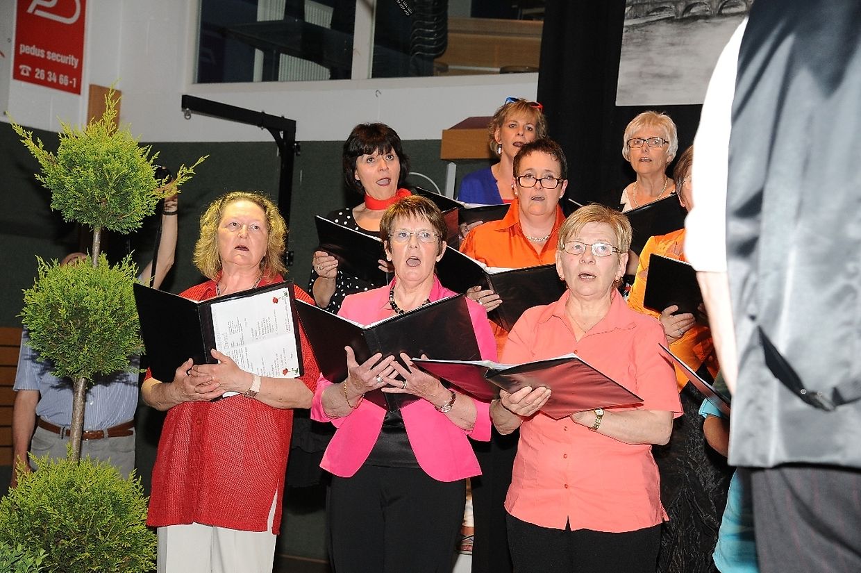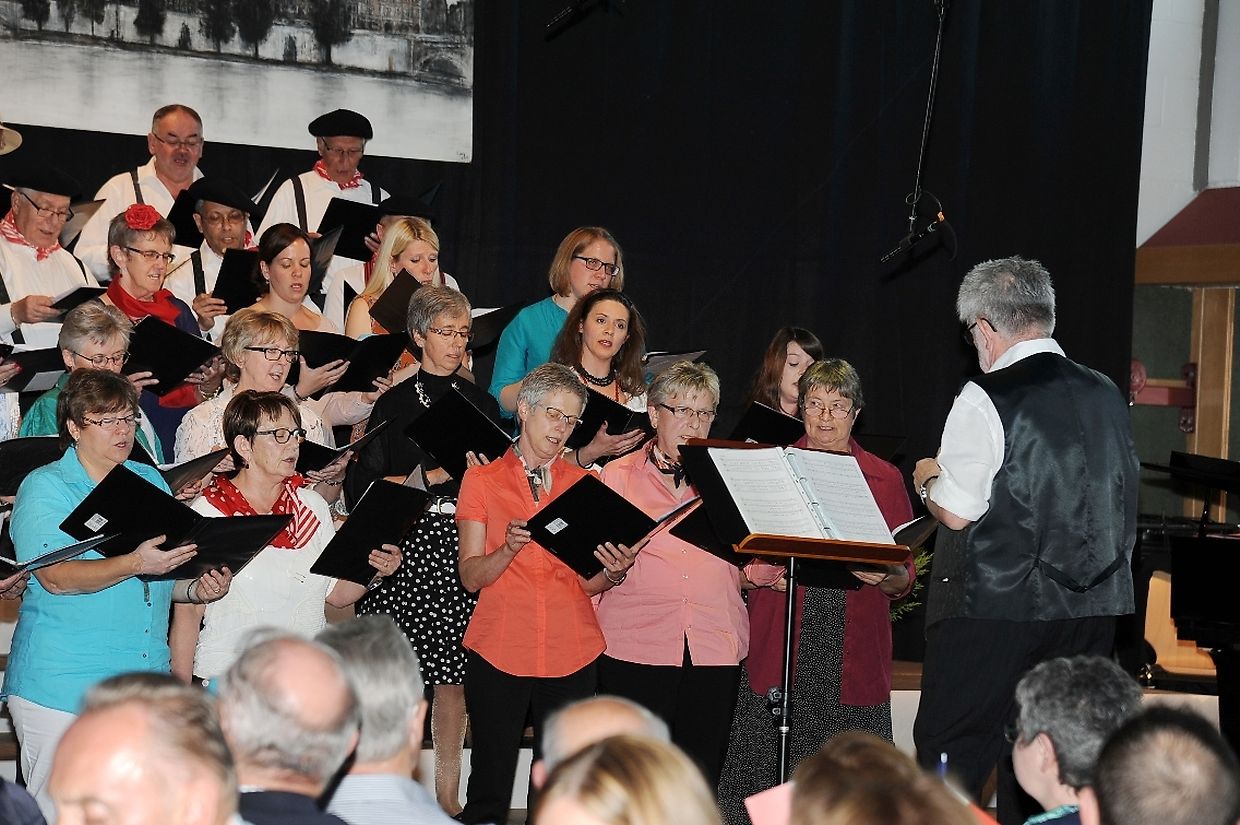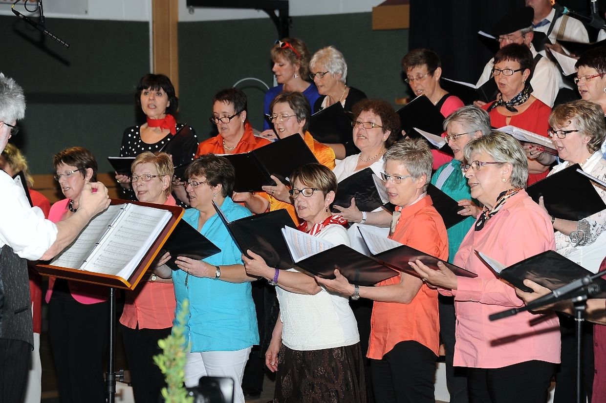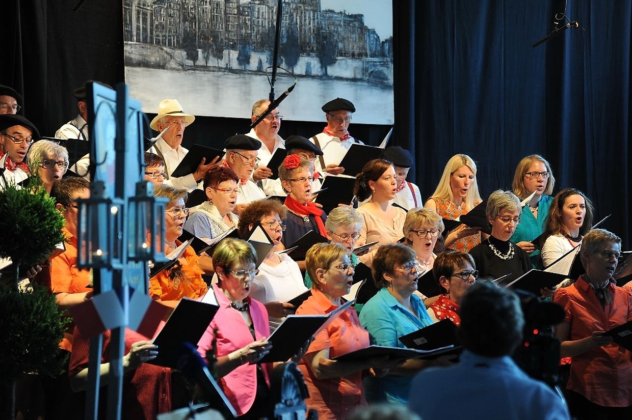 Mat franséische Chansons " à la carte" konnten d'Gesangveräiner vu Colmer- Bierg a Viichten zesumme mat hire Frënn ganz vill Gesangliebhaber op hirem Franséischen Owend e Mëttwoch, den 28. Mee an der Sporthaal zu Viichten iwerzeegen. Dese Concert stong ënnert dem Protektorat vun der Colmer a Viichtener Kulturkommissioun. Ënnert der Leedung vum Dirigent Henri Bissen sin ganz schéin a bekannt franséisch Lidder, wéi les Bales populaires, Etoile des neiges, l'important c'est la rose, les lacs du Connemara , Printemps du Charmeur bis hin zu Toutes les femmes sont belles, vun denen ronn 40 Sängerinnen a Sänger mat Bravour op eng professionell Manéier interprétéiert gin. Och d'Solistin Sylvie Schartz- Kips huet di zwee Lidder - Baccarole an Après un rève - mëschterhaft virgedroen. D'Sänger goufe begleet vum Caroline Plekkepoel a Sylvie Schartz- Kips um Keyboard, dem Janos Nadasi um Piano, dem Vania Lecuit op der Géi a vum Maurizio Spiridigliozzi um Akkordeon. Durch den flotten Owend den vun allen Uwiesenden mat vill Applaus honoréiert gouf, huet d'Marianne Kugener- Goethals gefouert. Wien sech dese Concert nach e Mol wëllt unhéieren, kann dat dese Samsdeg den Owend ëm 20 Auer am Kulturtzënter zu Colmer- Bierg mat erliewen (TEXT A FOTOEN: CHAREL REISER)