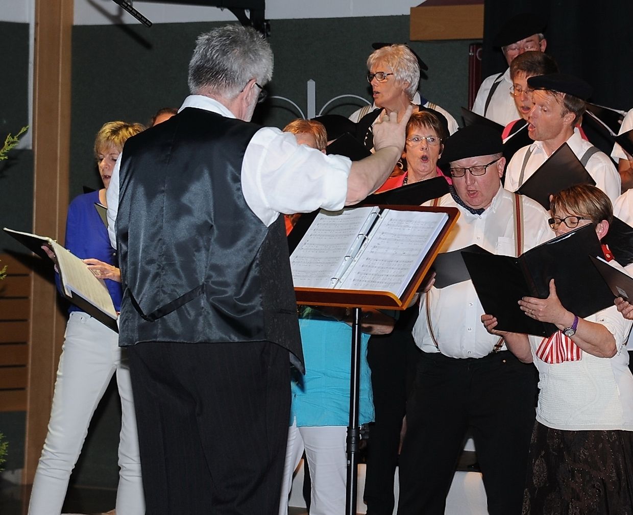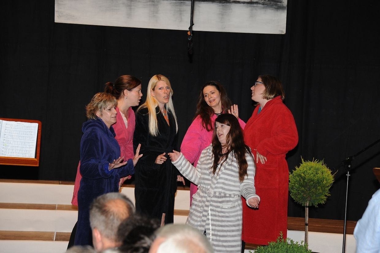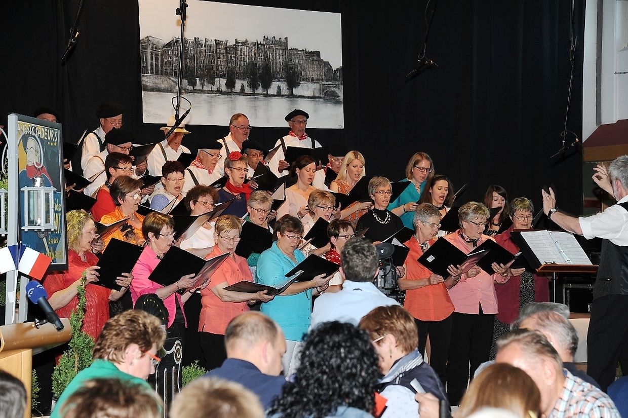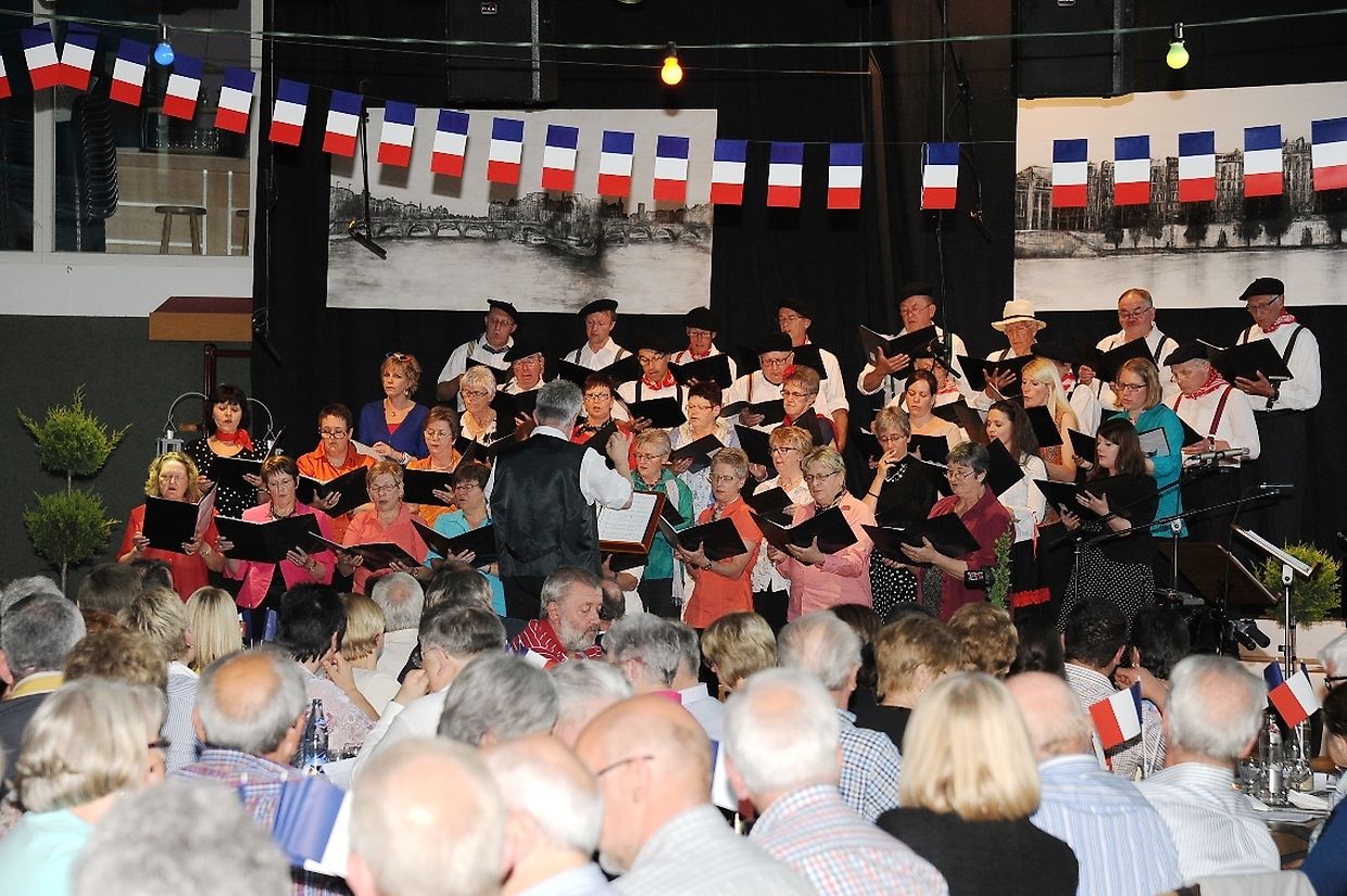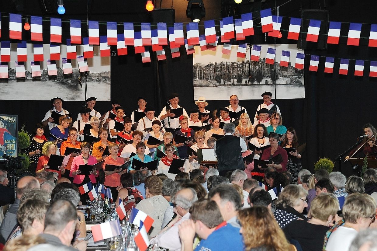Mat franséische Chansons " à la carte" konnten d'Gesangveräiner vu Colmer- Bierg a Viichten zesumme mat hire Frënn ganz vill Gesangliebhaber op hirem Franséischen Owend e Mëttwoch, den 28. Mee an der Sporthaal zu Viichten iwerzeegen. Dese Concert stong ënnert dem Protektorat vun der Colmer a Viichtener Kulturkommissioun. Ënnert der Leedung vum Dirigent Henri Bissen sin ganz schéin a bekannt franséisch Lidder, wéi les Bales populaires, Etoile des neiges, l'important c'est la rose, les lacs du Connemara , Printemps du Charmeur bis hin zu Toutes les femmes sont belles, vun denen ronn 40 Sängerinnen a Sänger mat Bravour op eng professionell Manéier interprétéiert gin. Och d'Solistin Sylvie Schartz- Kips huet di zwee Lidder - Baccarole an Après un rève - mëschterhaft virgedroen. D'Sänger goufe begleet vum Caroline Plekkepoel a Sylvie Schartz- Kips um Keyboard, dem Janos Nadasi um Piano, dem Vania Lecuit op der Géi a vum Maurizio Spiridigliozzi um Akkordeon. Durch den flotten Owend den vun allen Uwiesenden mat vill Applaus honoréiert gouf, huet d'Marianne Kugener- Goethals gefouert. Wien sech dese Concert nach e Mol wëllt unhéieren, kann dat dese Samsdeg den Owend ëm 20 Auer am Kulturtzënter zu Colmer- Bierg mat erliewen (TEXT A FOTOEN: CHAREL REISER)