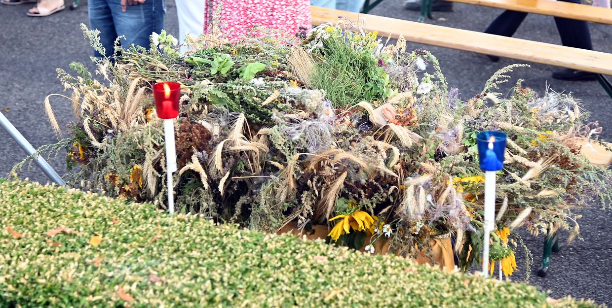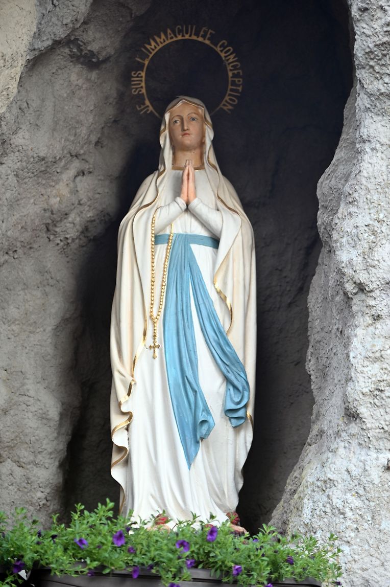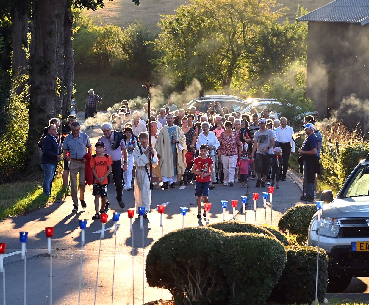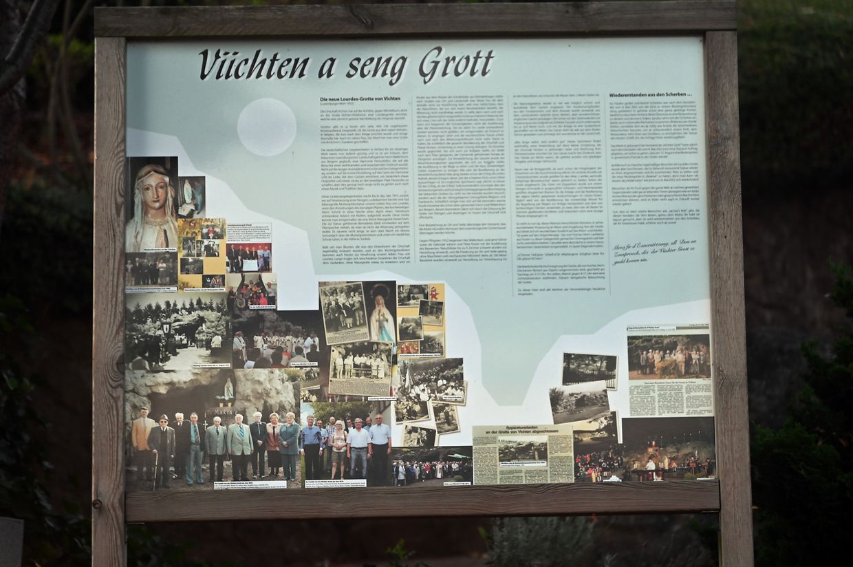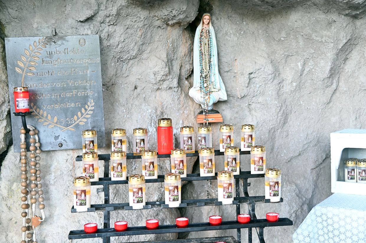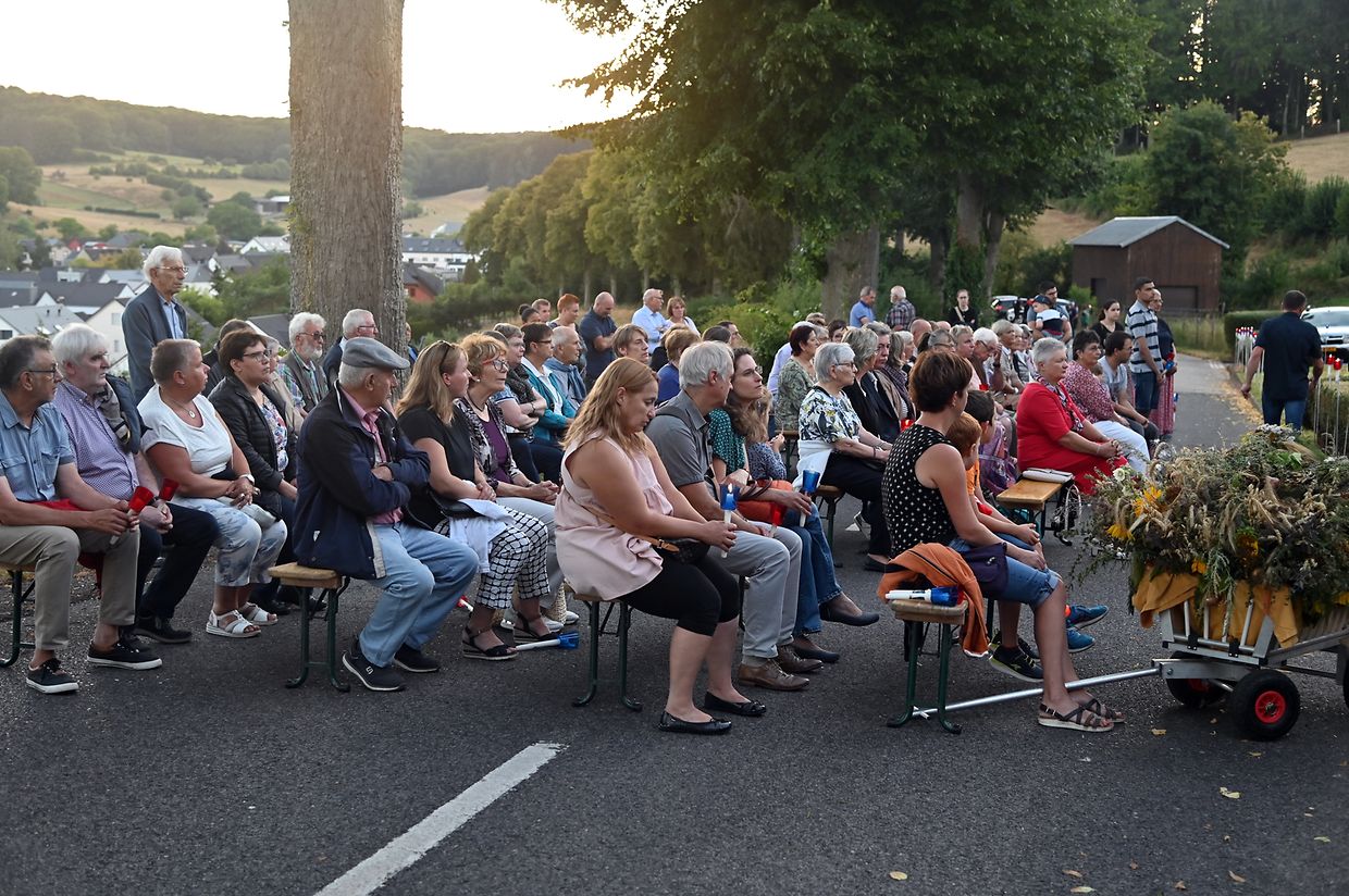 Traditionell Liichterprëssioun op Mariä Himmelfahrt vun der Kierch bei Lourdes Grotte mat Festmass a Seene vum Wësch. De Gottesdëngst gouf zelebréiert vum Abbé Vincent Billot a gesanglich verschéinert vun der Union Chorale Vichten. (CR ) (Fotoen: Charel Reiser)