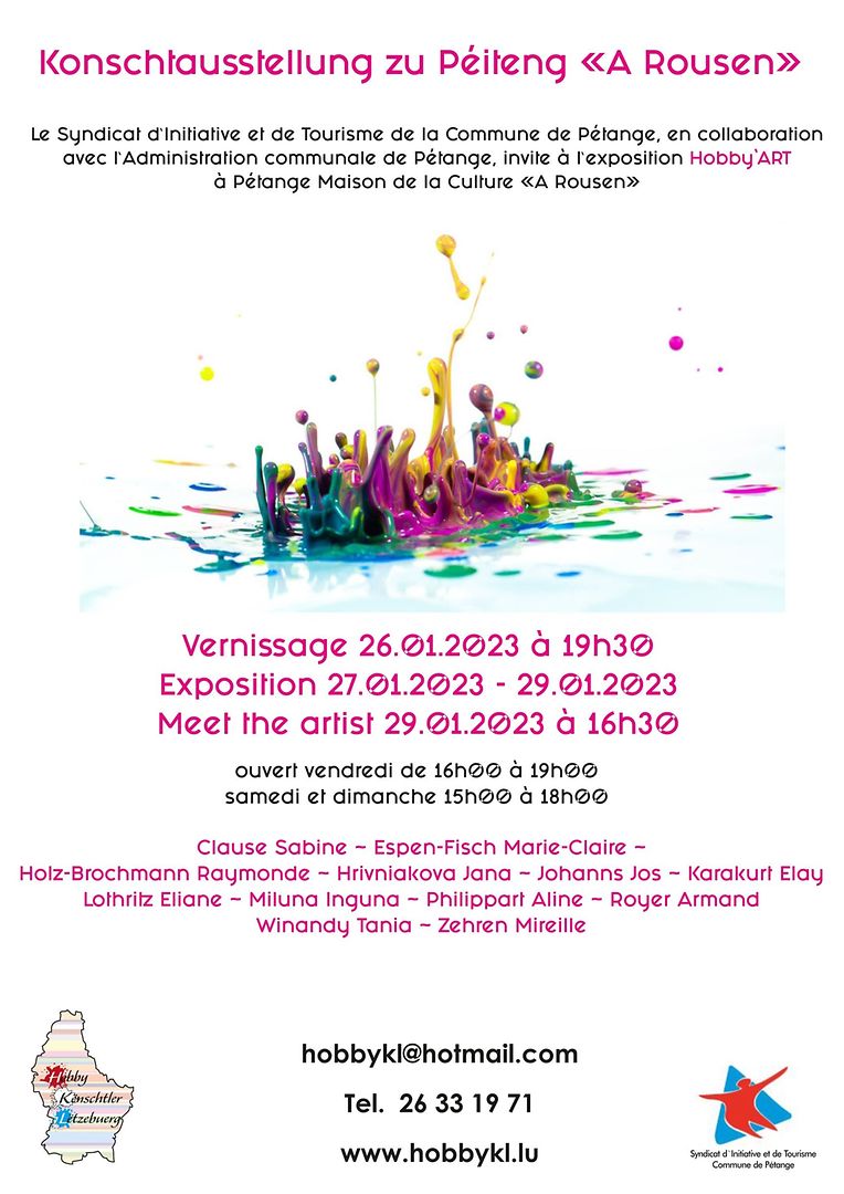 Vum 27.1. bis den 29.1. 2023 ass eng Biller & Skulpturenausstellung zu Péiteng an der Maison de la Culture « A ROUSEN »