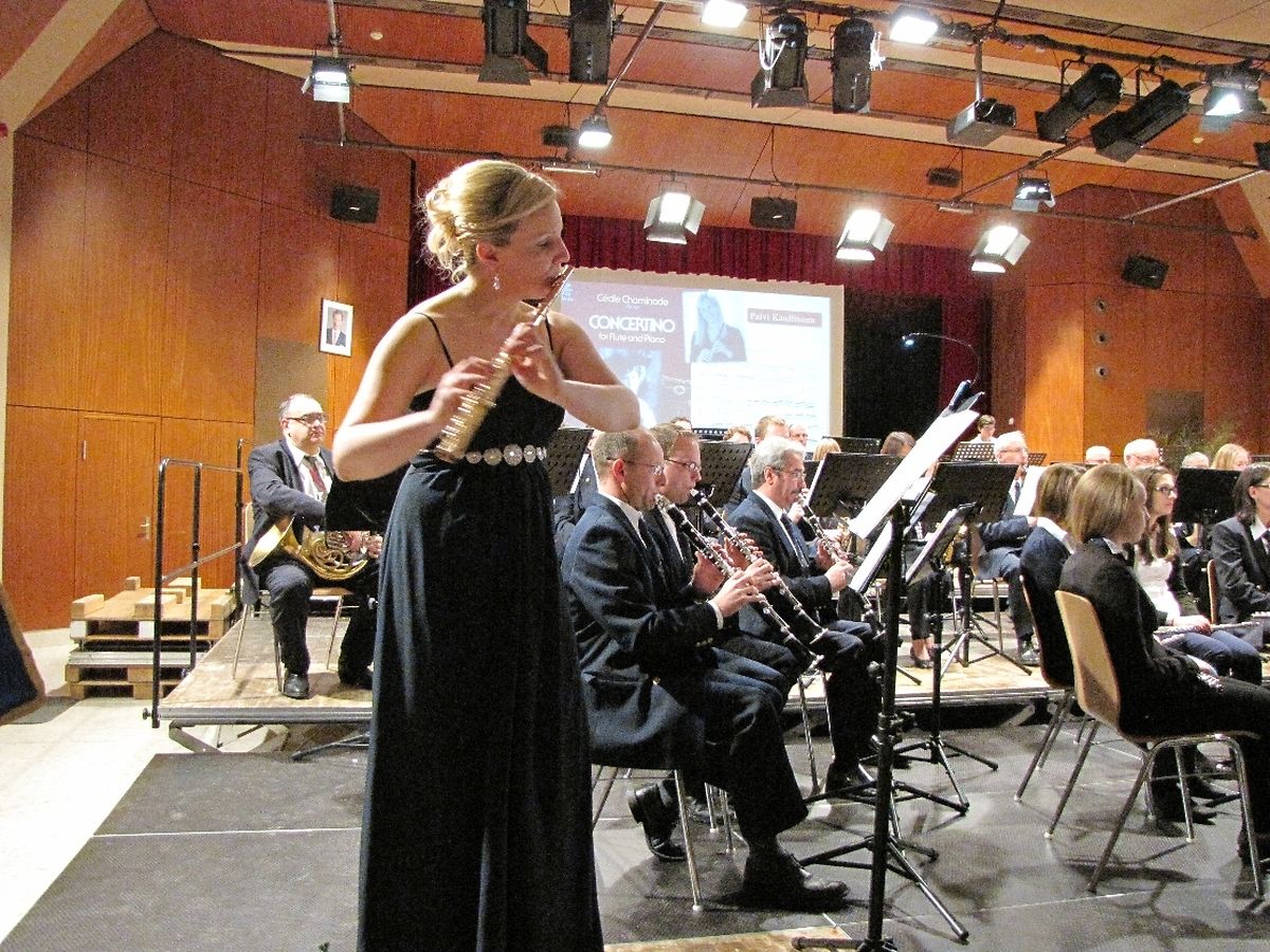 Höhepunkt des Gala Konzertes war der Solo-Part von Päivi Kauffmann ( Concertino für Solo-Flöte ). Sie hat ihre ersten musikalischen Schritte in der Walferdinger Musikgesellschaft gemacht und ist heute eine international anerkannte und sehr gefragte Musikerin. Zudem unterrichtet Sie Querflöte im städtischen Konservatorium.