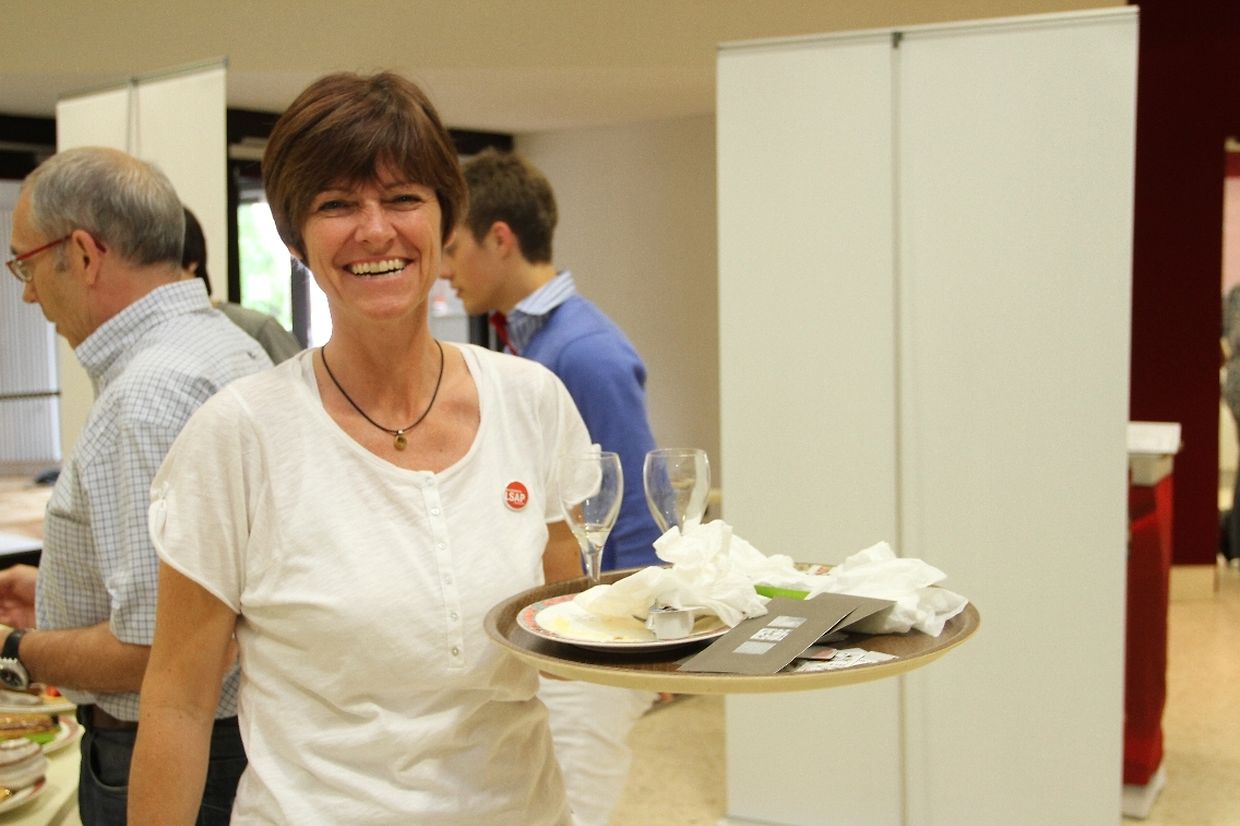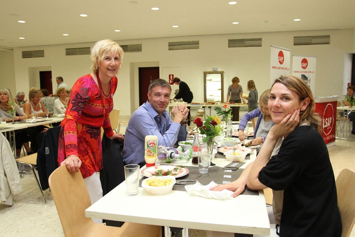 Relativ vill Leit waren op Invitatioun vun der LSAP-Walfer an den Centre komm.Alleguer déi iergendwéi eppes mat der LSAP-Walfer ze dinn hunn, hu gehollef, well Iessen an Gedrénks ass servéiert ginn.E gutt Iessen muss ofgeschloss ginn mat engem gudde Kaffi an engem Dessert. Vir den Dessert war gesuergt, Kuch an Taarten konnten Leit sech schmachen loosen.