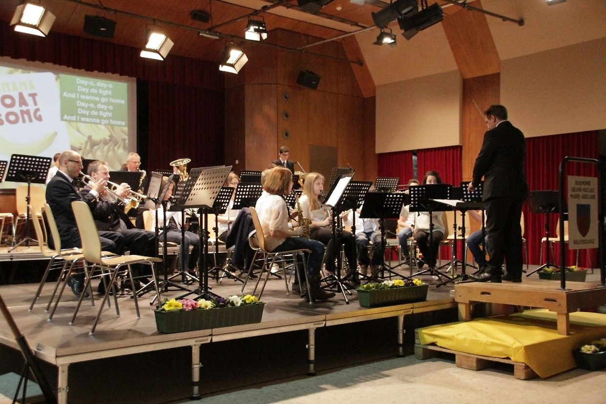 Neu war dieses Jahr, dass das Jugendensembel der Walferdinger Musikschule mit in das Konzert integriert wurde. Unter der Leitung von Sam Koob, spielten die Jungmusikanten mit Begeisterung 2 Musikstücke als Einstand zum Gala-Konzert alleine, sowie ein Stück zusammen mit der ganzen Harmonie.