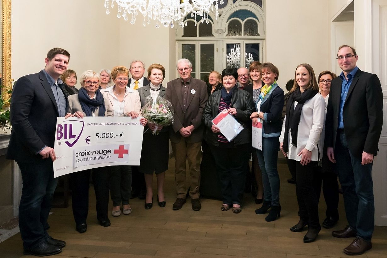 Auch dieses Jahr wurden wieder ehrenamtliche Spendensammler geehrt. Für fünfjährige Tätigkeit erhielten die Herren Atchia Muhammed und Raymond Lutgen ein Diplom und die Damen Michèle Mootz und Carmen Richardy die silberne Verdienstnadel für zehnjährige Beteiligung. Die Damen Simone Breuer und Frédérique Feidt wurden mit der goldenen Verdienstnadel für zwanzig Jahre Beteiligung an der Spendensammlung ausgezeichnet. Madame Maria Heinen wurde für 40-jährige ehrenamtliche Hilfe mit einem Blumenstrauß geehrt.