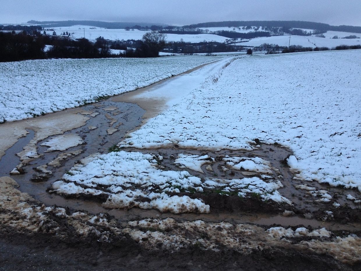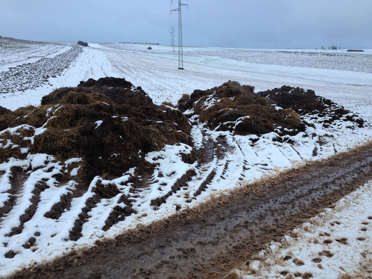 Do wëllt een mol gemittlech duerch den Schnéi um Flouer trëppelen goen, da muss een sech schonn rëm opreegen. Wei ass et méiglech dass ee Bauer seng Mëscht daerf esou no bei eng Quell leen, di op direktem Wee an d'Syr leeft. Brauch een do keng Kommodo -A Autorisatioun, oder ginn do einfach Aen zougemaach..... Gemeng, Asta, Fieschter....dir sidd gefrot.
