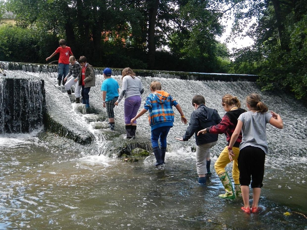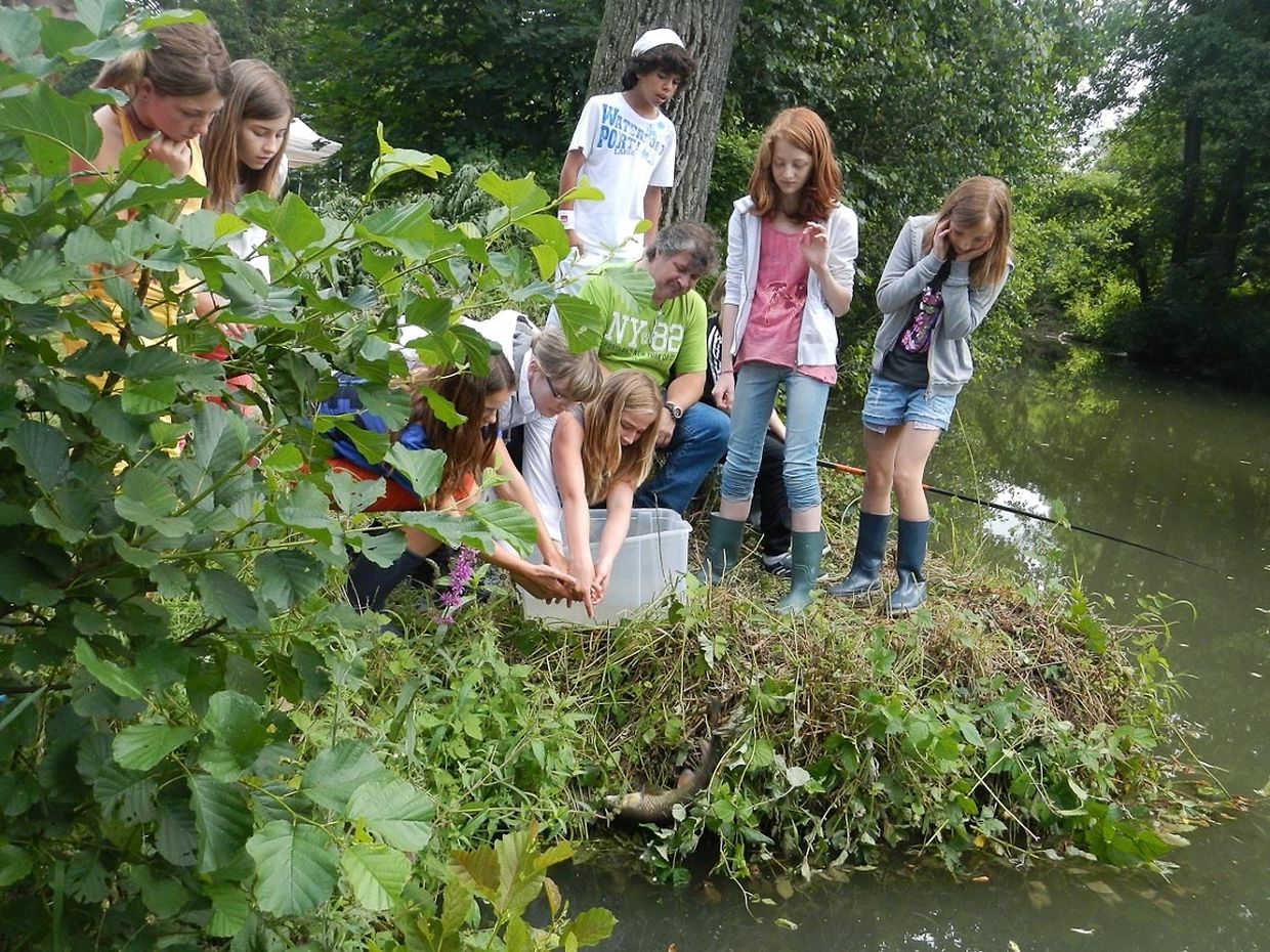 Zum Abschluss des 4 Zyklus der Primärschule hatte die Umweltkommission der Gemeinde Biwer die Kinder an "ihren" Bach eingeladen. Dank einer hervorragenden Zusammenarbeit mit dem Fëscherclub Syrdall Wecker und dem Pächter des Fischereiloses konnten viele der Kinder zum ersten Mal Bekanntschaft mit den Fischen und Insekten der Syr in Wecker machen.