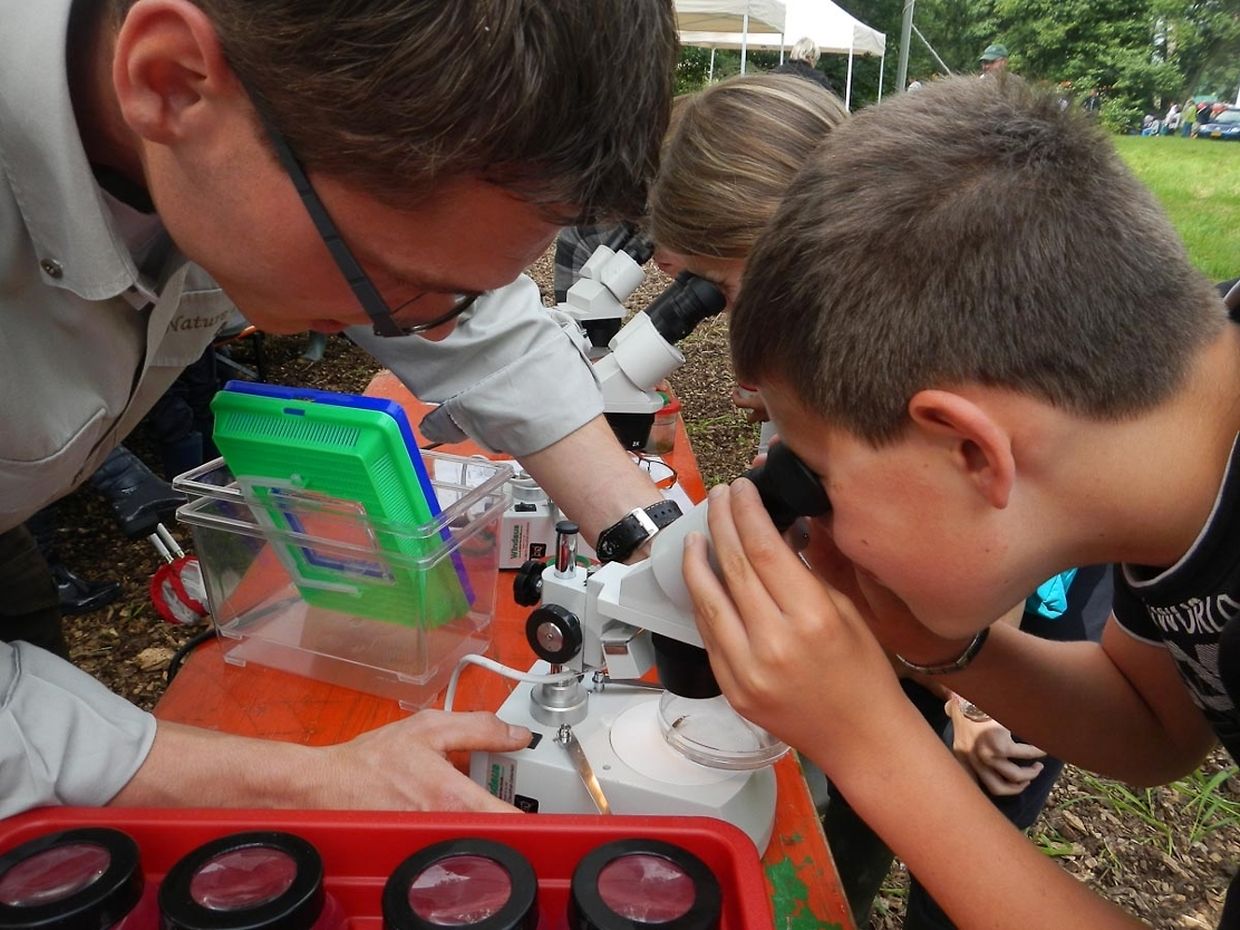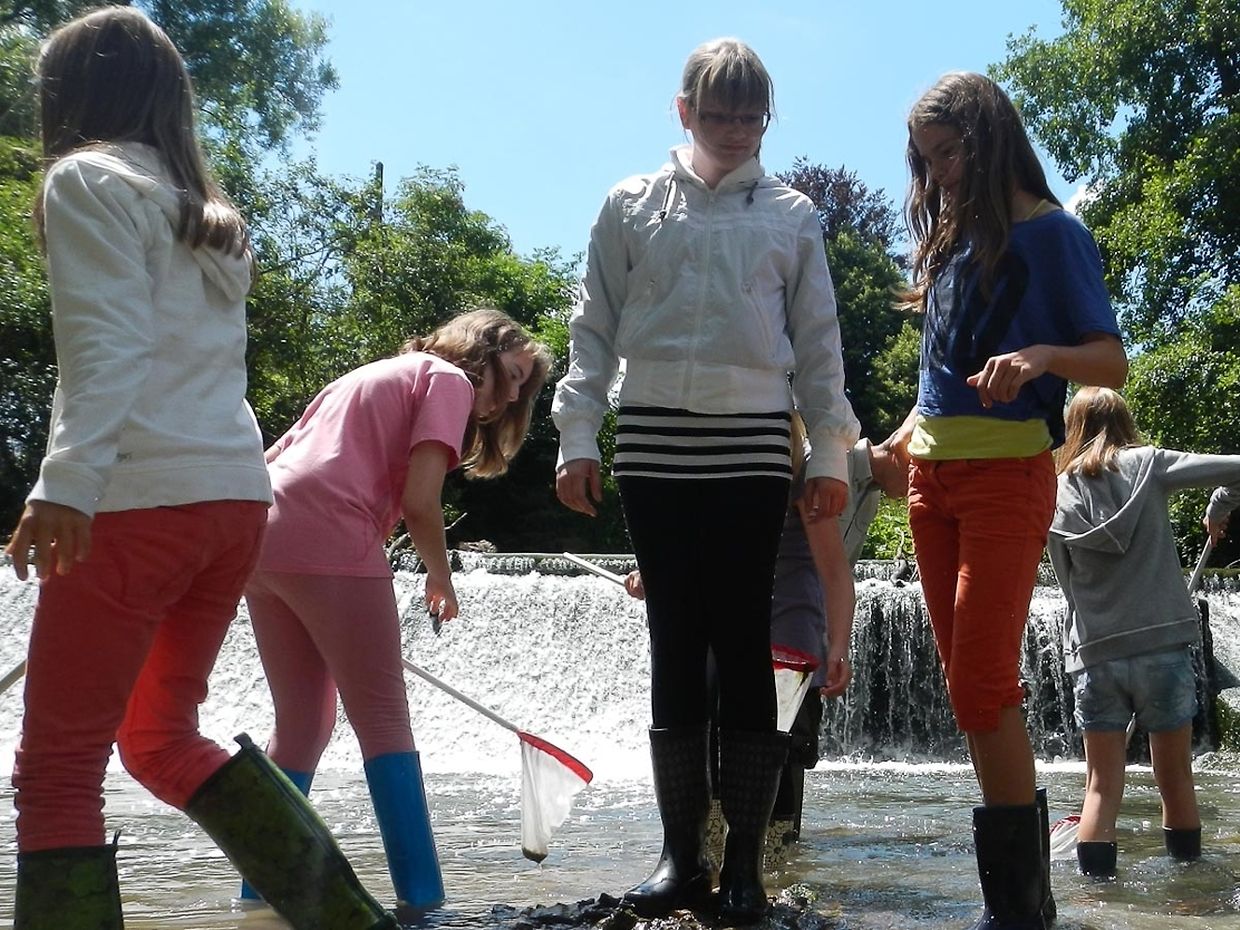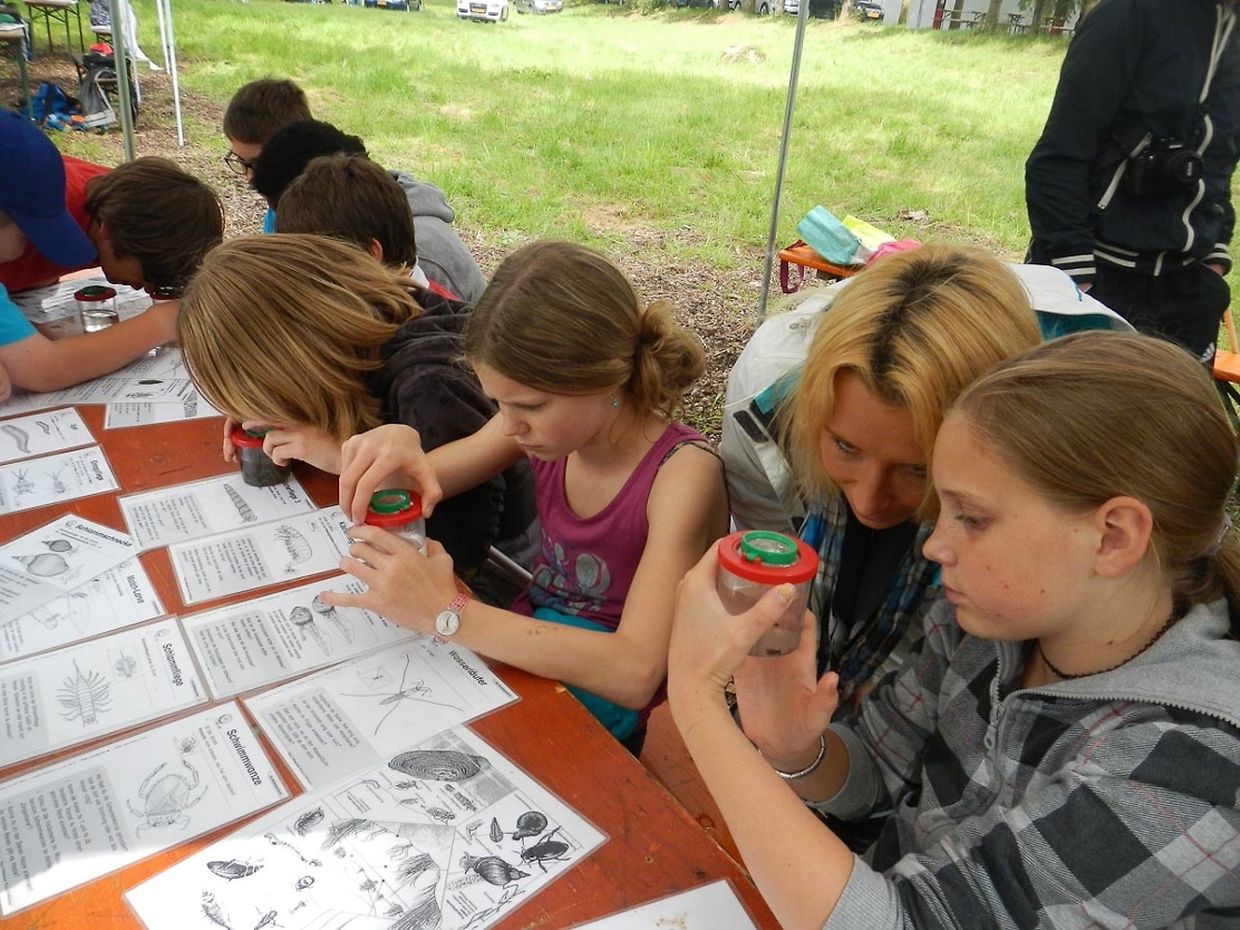 Unter der Leitung des Revierförsters Luc Roeder sammelten die jungen Forscher Insekten und kleine Fische am Ufer, um sie anschliessend mit der Lupe, oder dem Mikroskop zu begutachten.