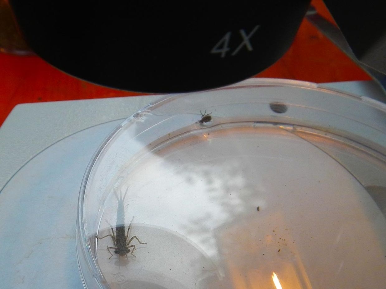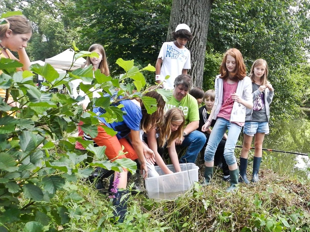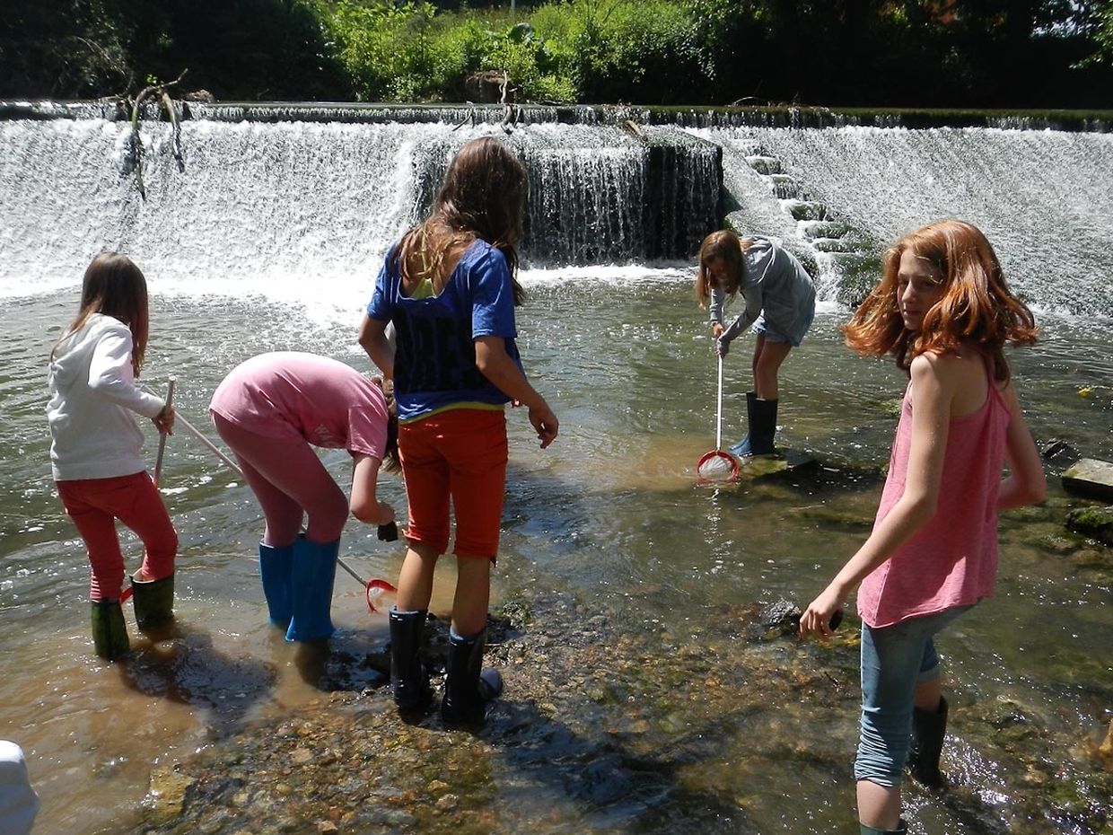 Unter der Leitung des Revierförsters Luc Roeder sammelten die jungen Forscher Insekten und kleine Fische am Ufer, um sie anschliessend mit der Lupe, oder dem Mikroskop zu begutachten.