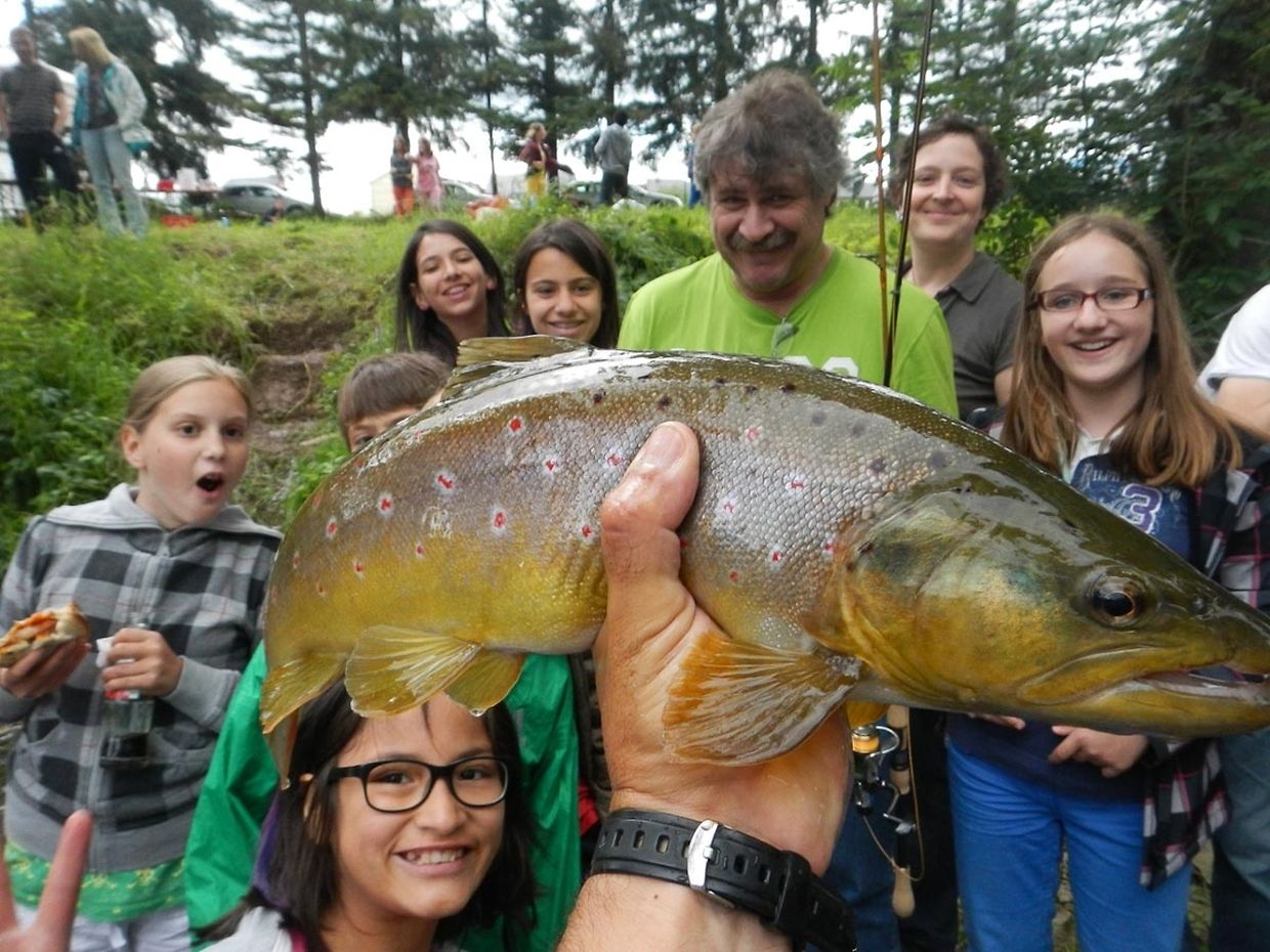 Die zweite Gruppe versuchte die Fische mit der Stipprute zu erwischen. Leider waren die Forellen nicht in Beisslaune, sodass nur 3 der schmackhaften Gesellen gefangen wurden. Die Fische wurden noch vor Ort ausgenommen, geräuchert und verspeist.