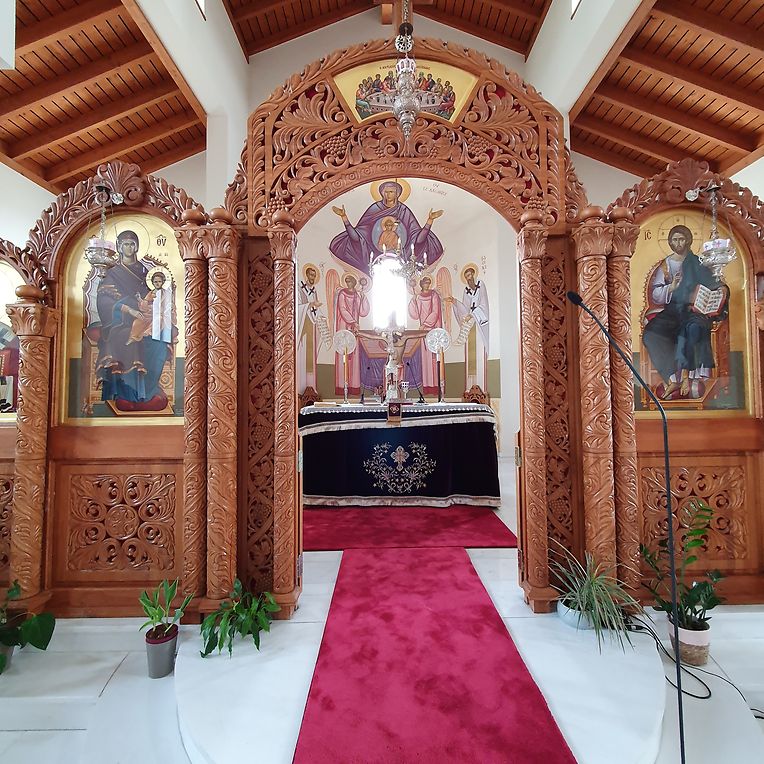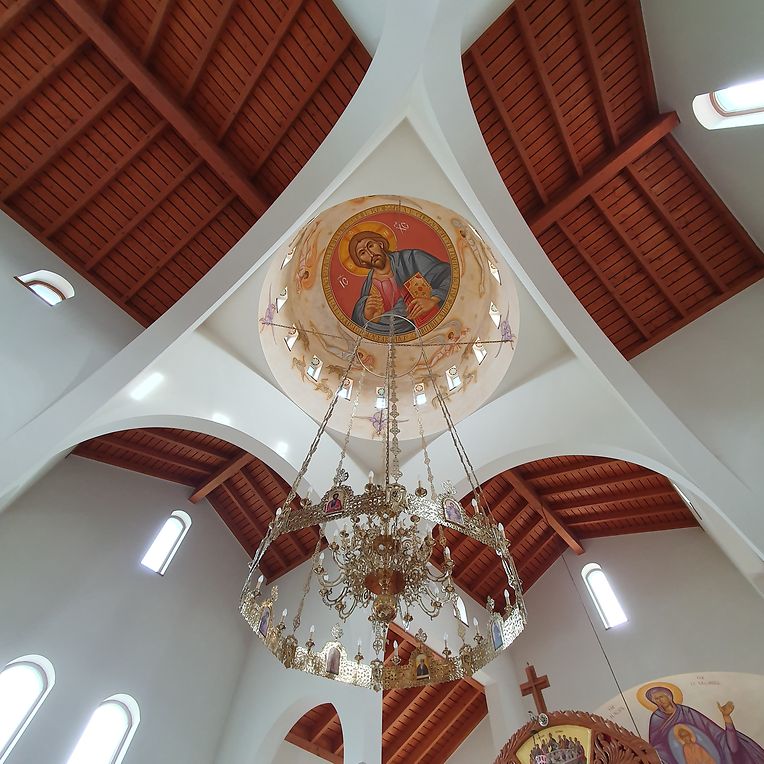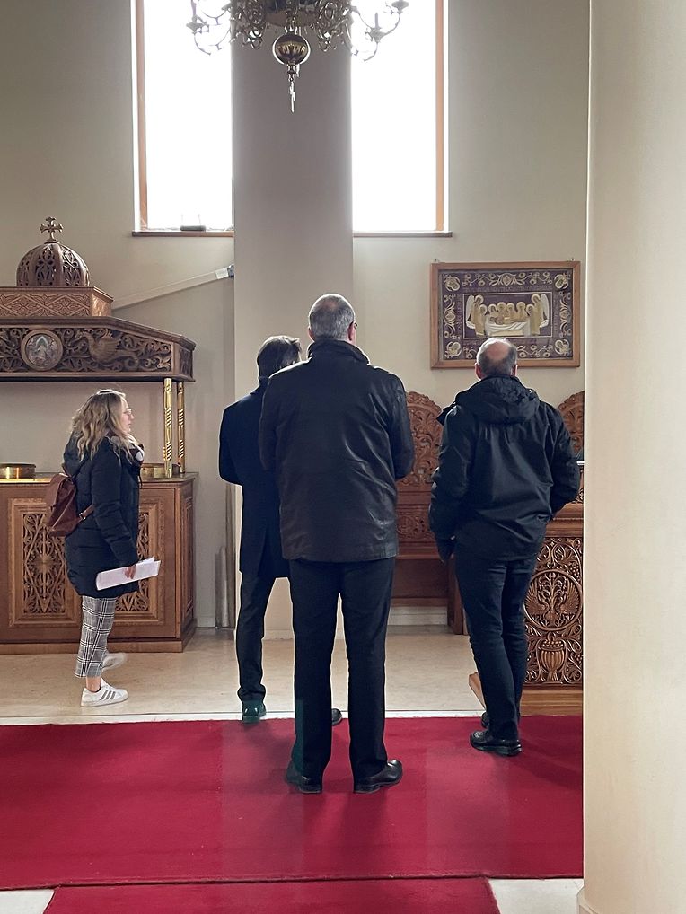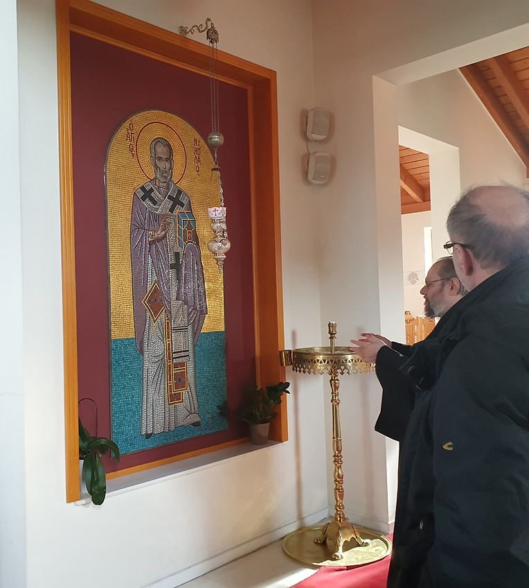 D'Kierch ass eenzegaarteg hei zu Lëtzebuerg. Si gouf op Terraine gebaut, déi vum kathoulesche Paschtouer Nicolas Schmidt un déi griichesch-orthodox Gemeinschaft gespent goufen. Mir haten d’Éier vum Rekter Mochonas Panagiotis guidéiert ze ginn, deen d’Visitt informativ an inspiréierend gestalt huet.