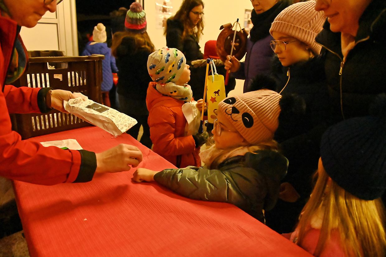 Jedes Kind teilte ein Spielzeug mit benachteiligten Kindern und erhielt als Belohnung ein Boxemännchen im Zelt, wo auch für Essen und Trinken gesorgt war. Der Erlös der Martinsfeier 2023 geht an die Sozialgruppe von Bonnevoie.