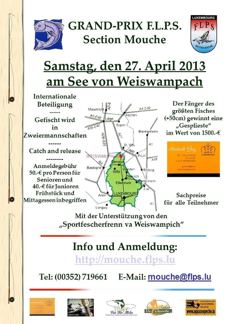 Seit dem Jahr 2001 veranstaltet die Section Mouche der FLPS in Zusammenarbeit mit dem „Sportfescherklub va Weiswampech“ ein internationales Fliegenfischerturnier am See von Weiswampach.