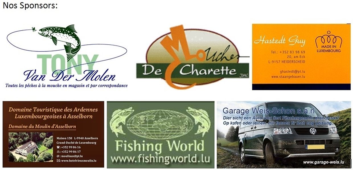 Dank der Unterstützung von Mouches de Charette, Orvis, Cz-Nymph, Tony van der Molen, Moulin d'Asselborn, Proxon, Fishing World, erhällt jeder Teilnehmer einen Sachpreis.