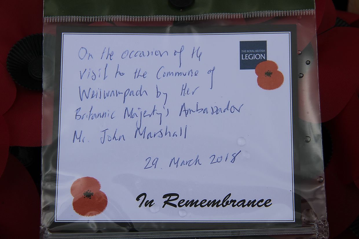 Den 29. Mäerz 2018 war et fir den Buergermester Henri Rinnen mat senge Scheffen, dem Norbert Morn an den Michel Deckenbrunnen, wéi och fir d'Geschichtsfrënn vum "Lancaster Memorial" eng grouss Éier den Englische Botschafter den Här John Marshall op enger kuerzer Visite an der Gemeng Wäiswampech begréissen ze kënnen. Beandrockend, mat enger Gedenkmiunte, an engem Blummekranz gouf und déi 14 Léit bei der Lancaster Gedenkplaz un d' Besatzung vum Lancasterflieger geduecht, déi an der Nuecht vum 12. op den 13. August 1944 hiert Liewen verluer hunn.