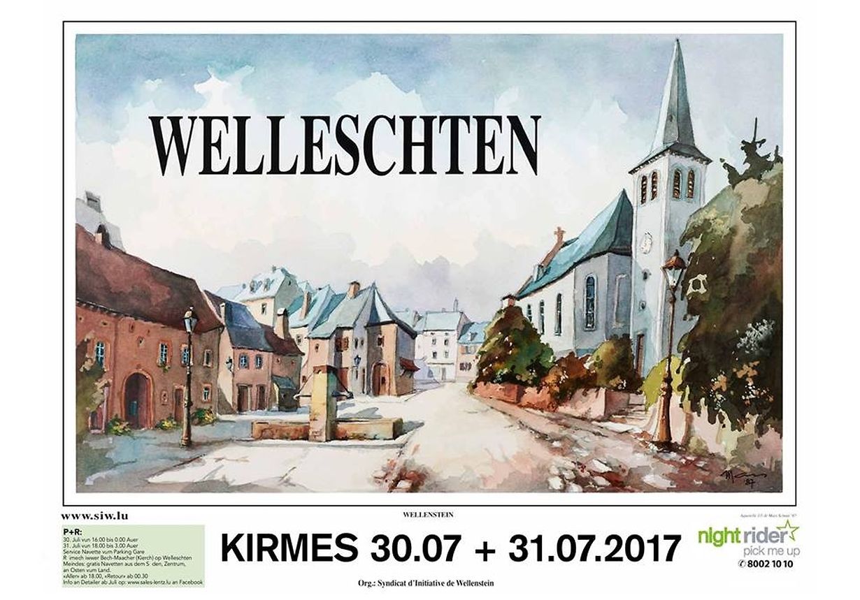 19:00 Vernissage vun der Austellung mat der Artistin Colette Gerges, Molerei, am Leeë-Sall zu Wellëschten. D’Ausstellung ass op Sonndes a Méindes vun 11:00 bis 20:00.