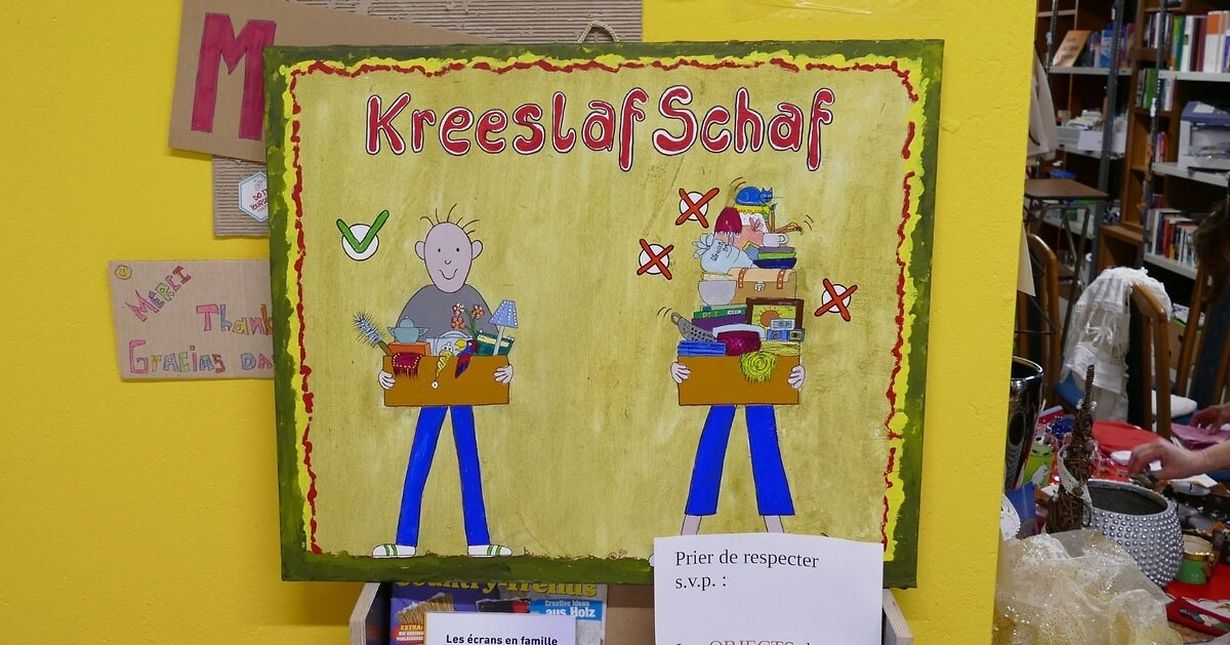 Wiltz Kreeslafschaf 28 Mar 28 Mar See More 28 Mar Syndicat d'Initative Wiltz Published on Saturday, 21 March, 2026 at 13:35 Wiltz, Luxemburg Date et horaire : samedi, 28 mars 2026 10h00 - 16h00 Lieu : Colab - Campingstrooss Organisateur : Transition Nord Tarif : gratuit De Kreeslaf-Schaf zu Wooltz ass erëm prett an invitéiert iech eng Kéier luussen ze kommen.All leschten Samschden a Mount: vun 10 - 12 Auer, Bréngen vu Saachen vun 10 - 16 Auer, Mathuelen vu Saachen Report inappropriate content More news by Syndicat d'Initative Wiltz > Kanner Fuesparty am Migo 11/01/24 Eschweiler (Wiltz) Groussen Kannerfuesbal zu Eeschwëller an der Gemeng 10/01/24 Eschweiler (Wiltz) Promenade Guidée - Wanterfeeling 2024 05/12/23 Eschweiler (Wiltz) Liichtwochen zu Wooltz 06/11/23 Wiltz Marché de Noël à Wiltz 19/10/23 Wiltz