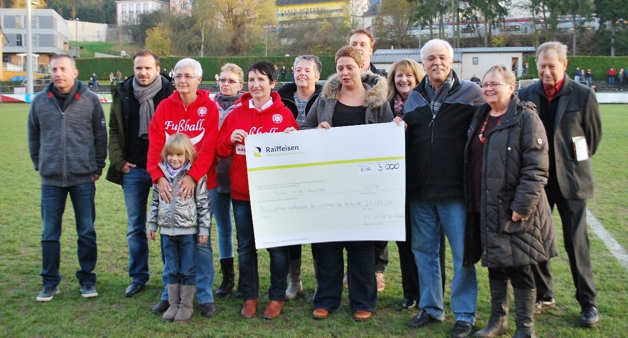 Wiltz FC Wiltz 71: Scheckübereichung an AVR Jeannot Mersch Published on Saturday, 29 November, 2014 at 11:19 Der Erlös eines Benefiz Fussballspieles, in Erinnernung an 3 Wiltzer Verkehrsunfallopfer wurde an die Vereingung AVR, "Association nationale des Victimes de la Route" gespendet Report inappropriate content More news by Jeannot Mersch > Merci un den Europadeputéierten Georges Bach 25/02/18 Heffingen Vianden : Mme Marie Becker-Faber feierte ihren 88. Geburtstag 08/03/17 Vianden 85 Joer gefeiert zu Veianen 25/02/14 Vianden Music for Life 24/12/13 Junglinster Concert vun der Militärmusek 19/12/13 Junglinster
