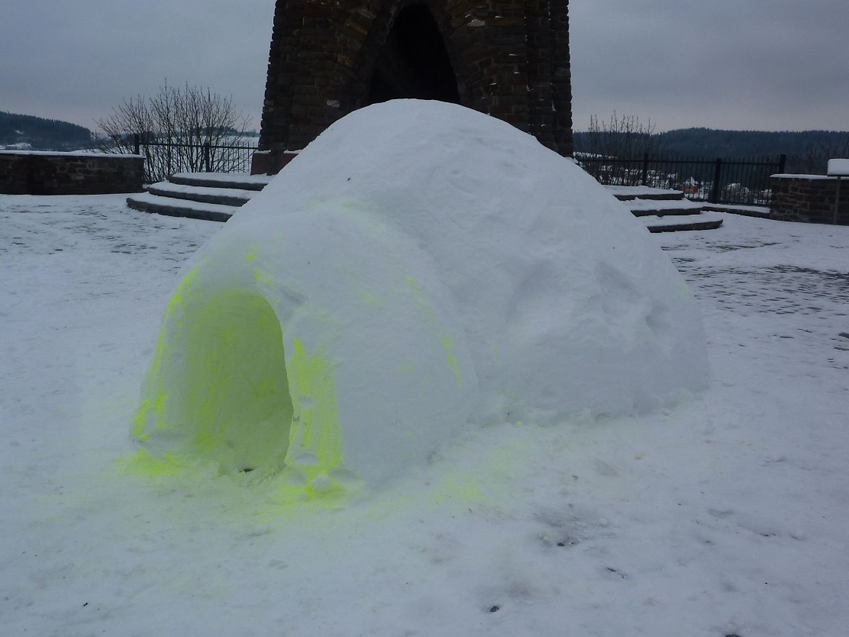 Erste sichere Anzeichen für die nächste Eiszeit gibt es derzeit in Wiltz. Im Zentrum der Ardennerstadt, auf dem Vorplatz des Streikdenkmals, steht derzeit dieses wunderschön gebaute Iglu. Über Nacht muss es wohl entstanden sein, kann doch bis dato niemand Auskunft geben, weder über die Entstehung des wohlgeformten Schneehauses noch über die Erbauer.