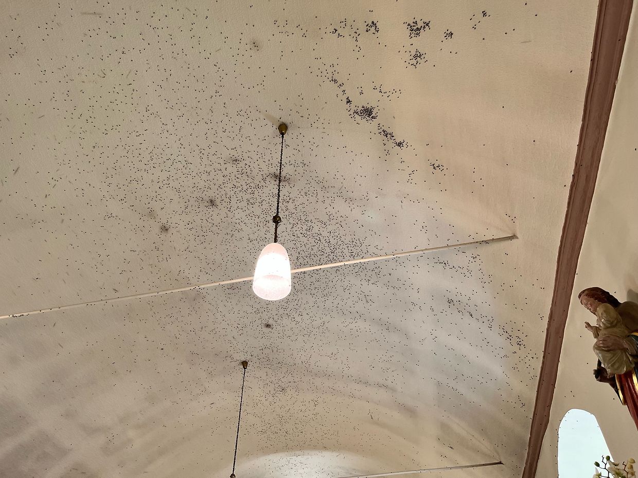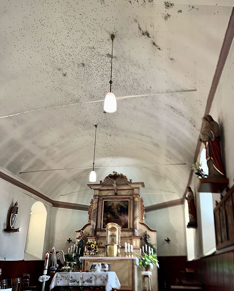 Ein grosser Schwarm Mücken hatte sich in der Kirche angesammelt zur Feier der Sonntagsmesse vom 10. September 2023. Wohl ein Fingerzeig Gottes, dass diese Gottesgeschöpfe hier Präzens zeigten, um auf die vielen leeren Plätzen in vielen Gottesdiensten aufmerksam zu machen? Somit war dieser Gottesdienst nicht an Menschen gut besucht, aber wohl mit mehren 1000-den Mücken!