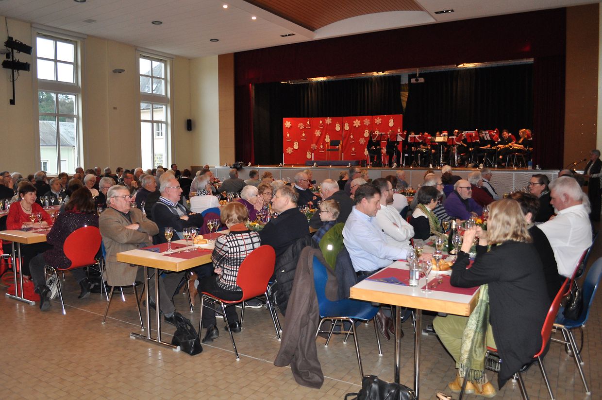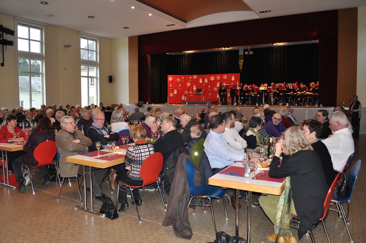 3.Alter Kommissioun vun der Gemeen Wormer huet traditiounsgeméis op hir alljärlech Seniorenfeier an de Centre Culturel op Wormer invitéiert an der Aluedung woaren vill Leit nokomm. Mat engem Bus, den Dierfer vun der Gemeen Wormer ugefuer huet, konnten Invité’en profitéieren. Musek vun Wormer huet mat flotten musikaleschen Arrangementer fir eng Virchrëschtlech Stëmmung gesuergt. Martine Schmit Schäffin a Präsidentin vun der 3. Alter Kommissioun huet Leit begréisst, ënnert hinnen den Schäffen Mathis Ast an Gemeeneconseilleren Marc Kring an Philippe Steffen. An hirer Ried huet Präsidentin dem Gemeenepersonal fir Organisatioun an Dekoratioun am Centre Culturel an hiren Memberen aus der 3. Alter Kommissioun fir hiren Asatz bei deeser Feier villmools Merci gesot . Martine Schmit huet dunn verschidden ustoend Projet’en an der Gemeng virgestallt, wou den Uschloss un Kanalisatioun zou Wormer, den Bau vun engem Schëffsquai zou Éinen gréisser Baustellen duerstellen. Wann de Quai zou Éinen fäerdeg gestallt ass, wäert dat eng weider Attraktioun fir Touristen an der Gemeen sinn. Och léit de Projet fir, fir an de Casino zou Éinen eng flott Touristenwunneng anzeriichten. Präsidentin huet hir Ried ofgeschloss an allen Leit schéi Chrëschtdeeg, an e glécklecht a gesond naut Joer gewënscht. Bei enger Assiette an engem gudden Pättchen Wäin offréiert vun der Gemeen Wormer woar Stëmmung gutt. Als Iwwerraschung ass de Kleeschen nach op Besuch komm an huet allen Uwiesenden e klengen Cadeau iwwerreecht