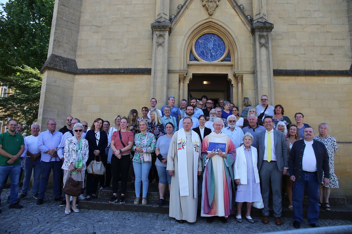„Forainsaumônier“ Patrick Muller konnte dieses Jahr wieder auf die aktive Mitwirkung seines niederländischen Mitbruders und Schaustellerseelsorger Salesianerpater Bernhard van Welzenes zählen, welcher, wie in den vorigen Jahren, aus Holland angereist war. Er schaut dieses Jahr auf 50 Jahre Dienst als Schausteller-, Zirkus- und Schifferseelsorger zurück, der luxemburgische Schaustellerseelsorger hingegen auf immerhin schon 20 Jahre. Beiden wurden mit Applaus und Geschenken gedankt. Thema der Ansprachen der Seelsorger war dann auch die Dankbarkeit im Sinne des Apostel Paulus: „In eurem Herzen herrsche der Friede Christi;....Seid dankbar.“ (Kol 3,15). In den Fürbitten wurde für Frieden in der Ukraine gebetet, darüber hinaus für jene Schausteller und Familien deren wirtschaftliche Existenz in dieser Krisen-Zeit bedroht ist, welche gesundheitlich geschädigt sind, wie auch für die im vergangenen Jahr verstorbenen Mitglieder der internationalen Schaustellerfamilie. Hervorzuheben ist die diesjährige Anwesenheit der ehemaligen Stadt-Bürgermeisterin Colette Flesch wie auch des Schöffen der Stadt Luxemburg, Maurice Bauer. Für feierliches Orgelspiel und Gesang zeichnete der Musikstudent Michel Krier verantwortlich.