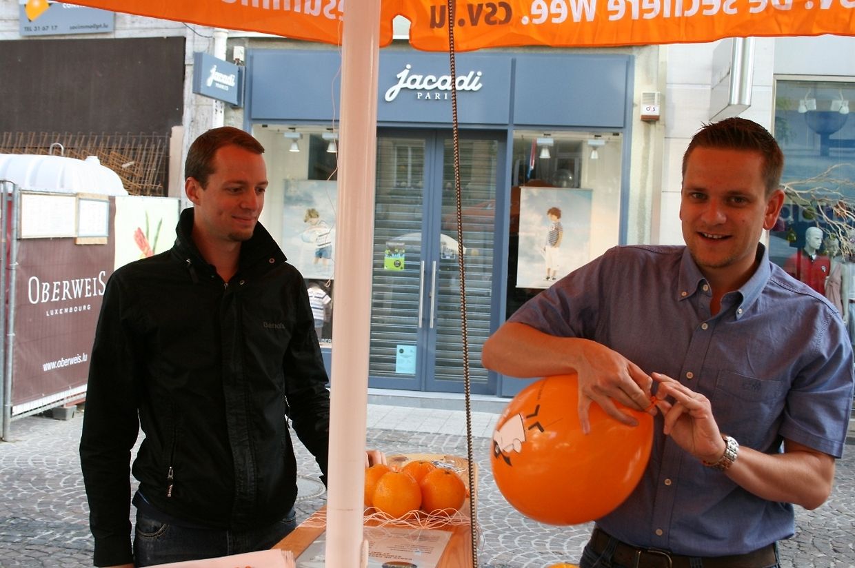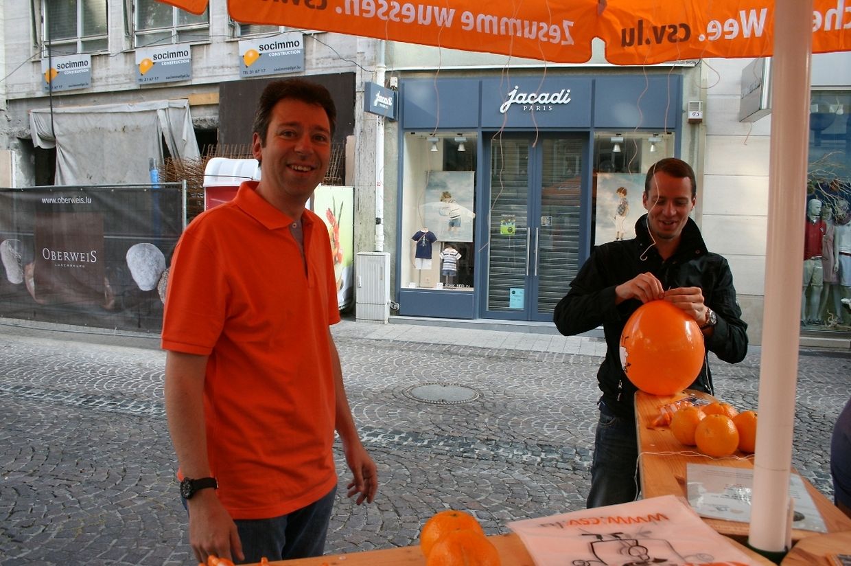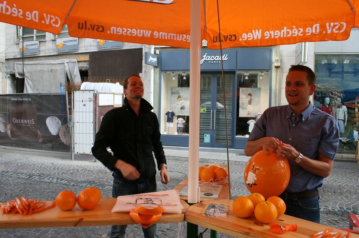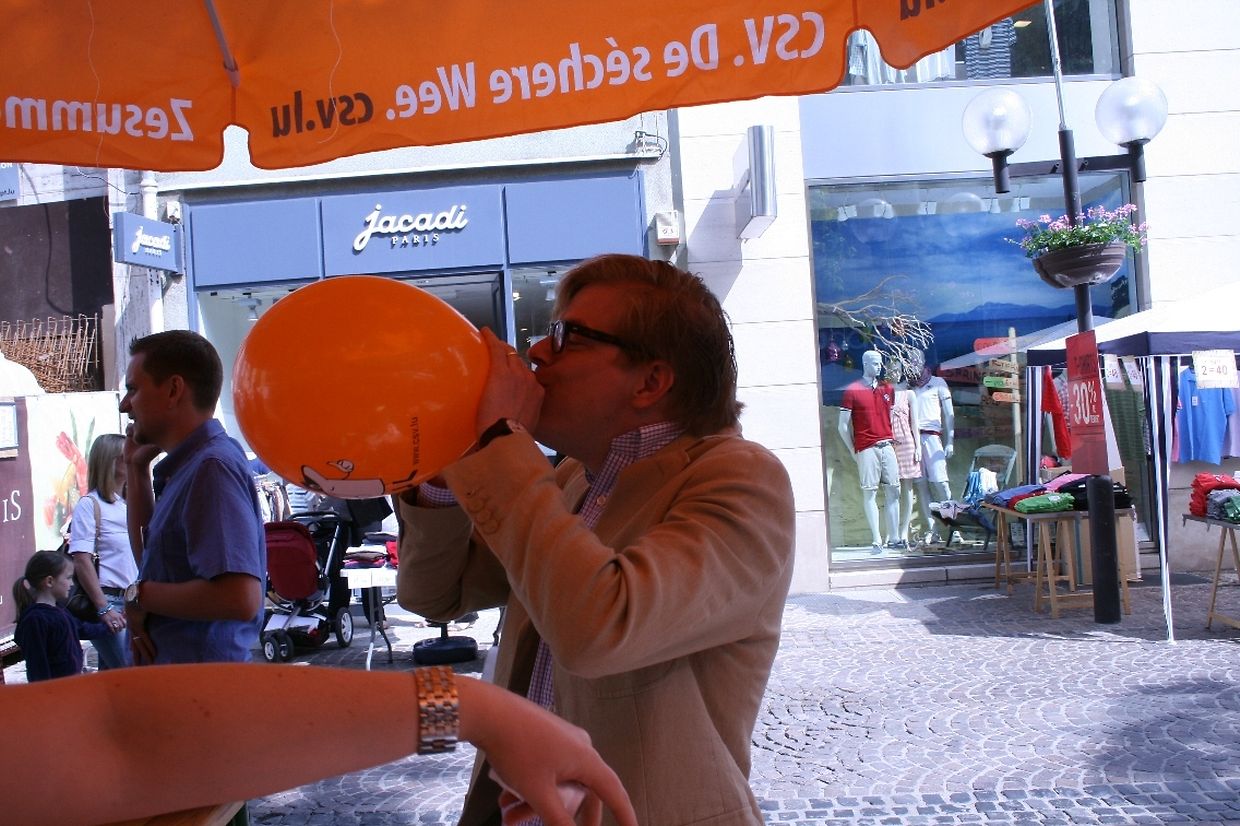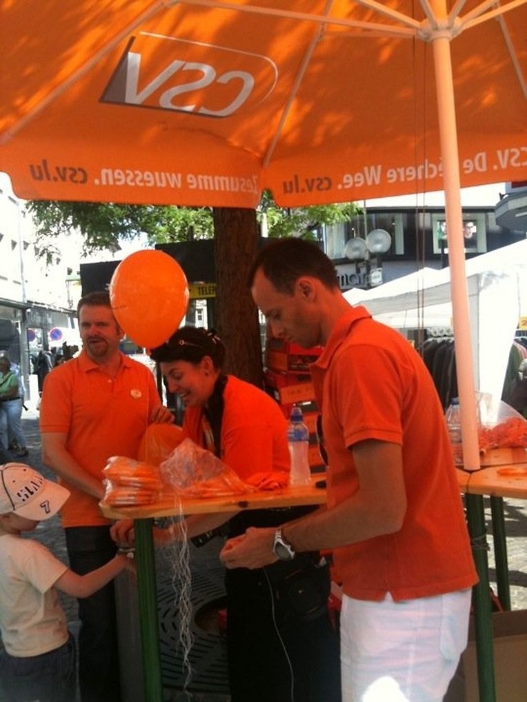 D'Wieder hat dest Joer gudd mattgespillt, önnert strahlend bloem Himmel huet d'CSV aus der Staat Orangen un d'Leit verdélt, de Kanner Loftbäll opgeblosen an de Leit hier Doléancen entgéintgeholl.