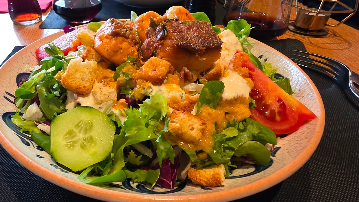 Ce n’est pas une simple salade “vite faite”, c’est une véritable entrée signature, bien travaillée, équilibrée et cohérente avec l’identité du lieu.
