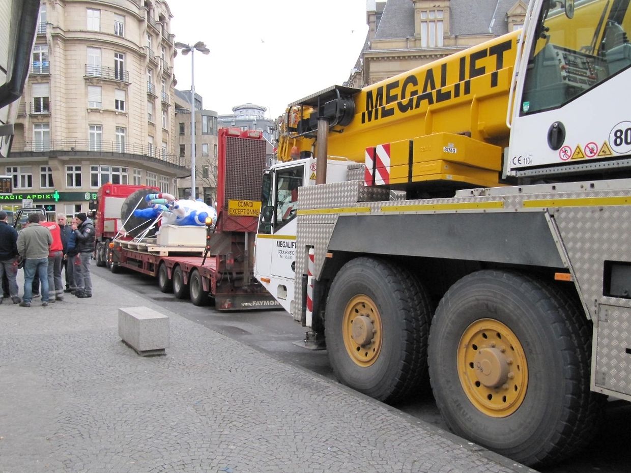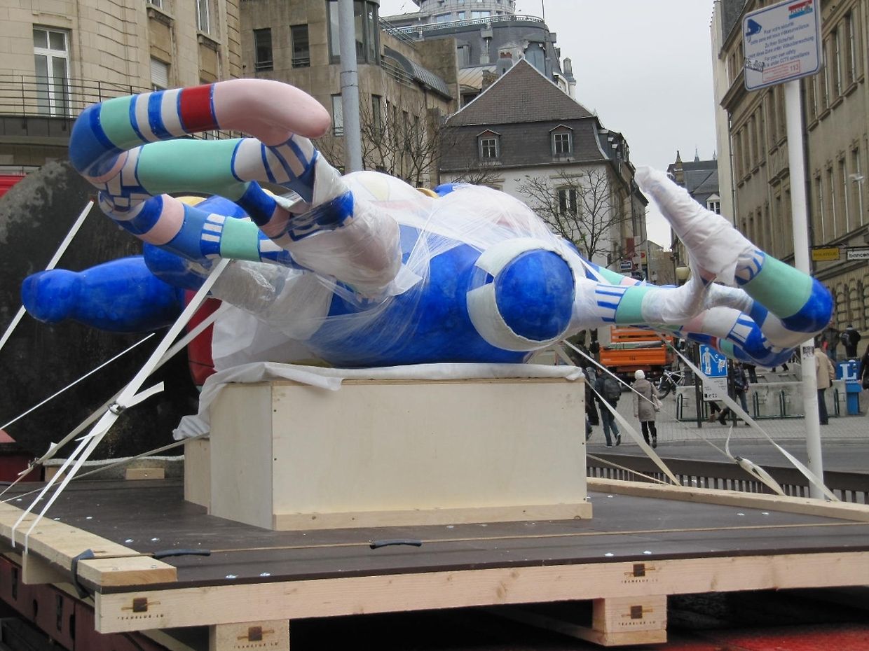 Die Nana musste wegen der bevorstehenden Vorarbeiten des Hamilius-Projekts weichen. Behutsam und wohl verpackt wurde die Skulptur mit einem Sattelschlepper abtransportiert. Sie wird nun im Depot des Nationalen Geschichtmuseums sicher verwahrt.