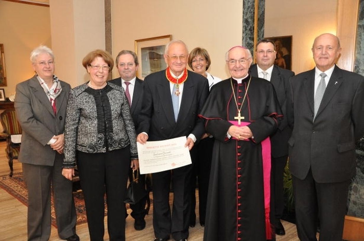 Im Rahmen eines Empfangs in seiner Residenz verlieh Erzbischof Mgr. Fernand Franck am vergangenen Freitag im Namen von Papst Benedikt XVI. den Orden eines „Commandeur de l'Ordre Saint Grégoire le Grand“ an Justin Heirendt.