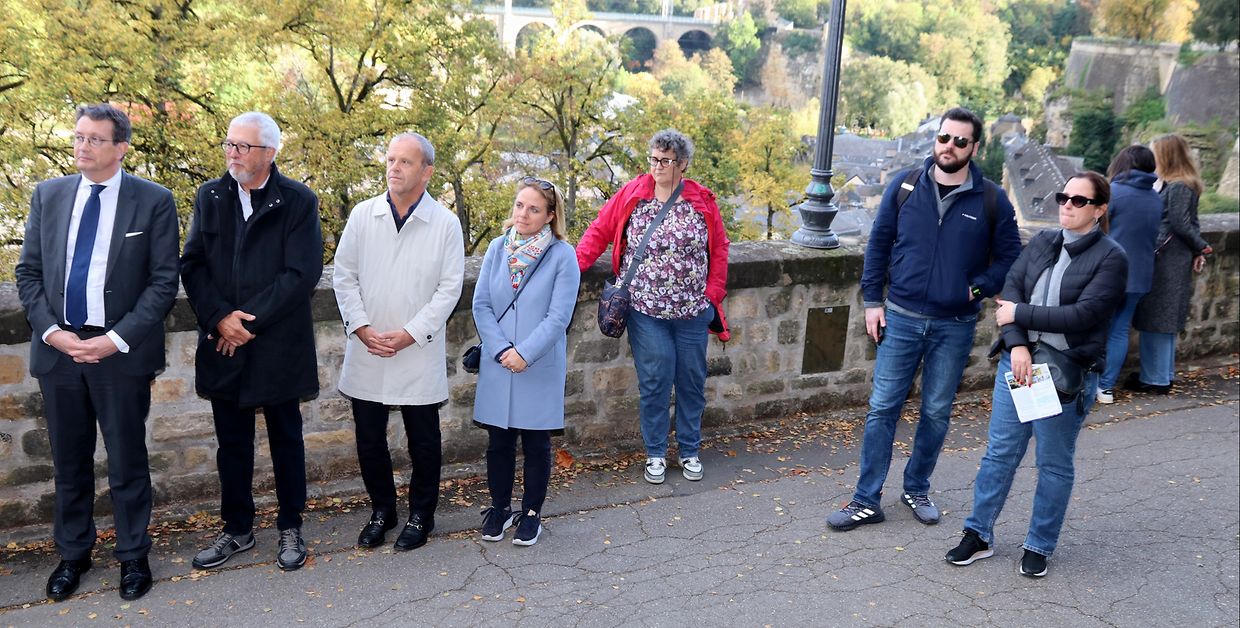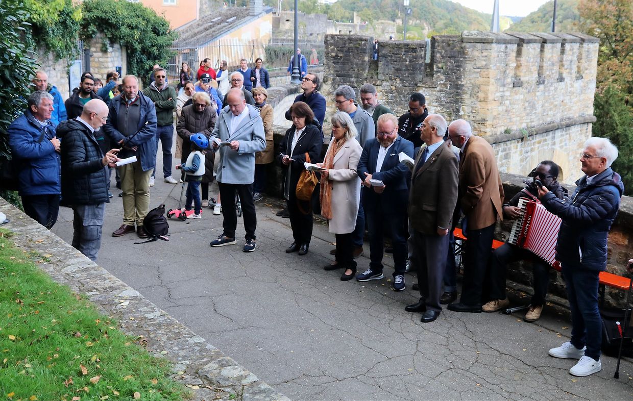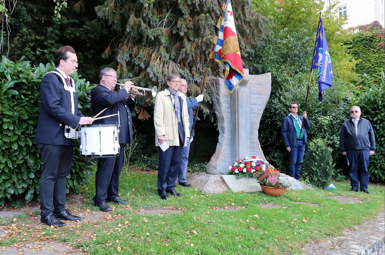 Bach der Enthüllung der Gedenkplatte und dem Niederlegen eines Blumengebindes erinnerte Comité-Alstad-Generalsekretär Claude Esch namentlich an die von den zu Ehrenden erbrachten Opfer. Mit der von einer Abordnung der Fanfare des Faubourgs intonierte Sonnerie aux Morts und der Heemecht mit dem Chor „Sang a Klang“ aus Luxemburg-Pfaffenthal endete die Gedenkzeremonie