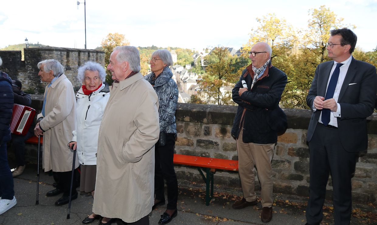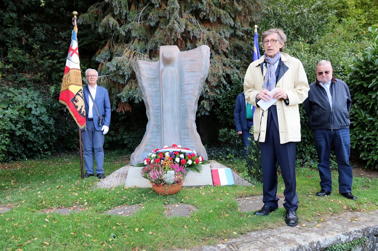 In seiner Eigenschaft als Administrateur des Comité Alstad hieß François Jaeger unter den Anwesenden die Zeitzeugin und von Nazi-Regime in den Reichsarbeitsdienst und Kriegshilfedienst gezwungene heute fast hundertjährige Maisy Bonichaux willkommen. Des Weiteren hatten sich Josy Lorent, Präsident der Enrôlés de Force - Victimes du Nazisme sowie die Schöffen Corinne Cahen und Maurice Bauer eingefunden. Der Redner erinnerte an die Entstehung der Gedenkstele.