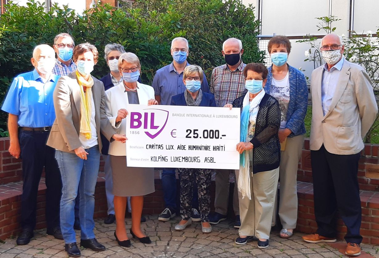 Am vergangenen 2. September konnte Caritas-Präsidentin Marie-Josée Jacobs mit großer Freude einen symbolischen Scheck in Höhe von 25.000 € von Kolping Luxemburg entgegennehmen. Diese großzügige Summe wurde von Kolping Luxemburg im Laufe des Jahres im Rahmen der Kleidersammlungen gesammelt.