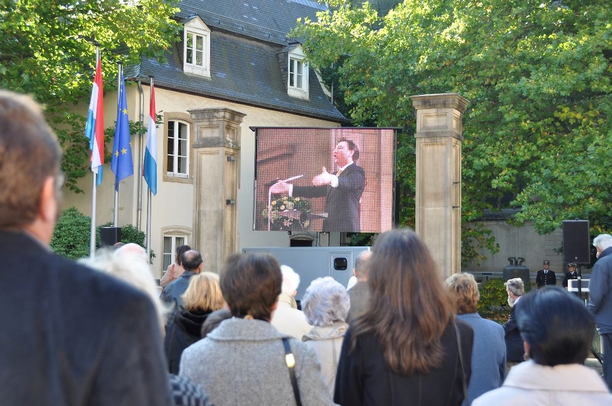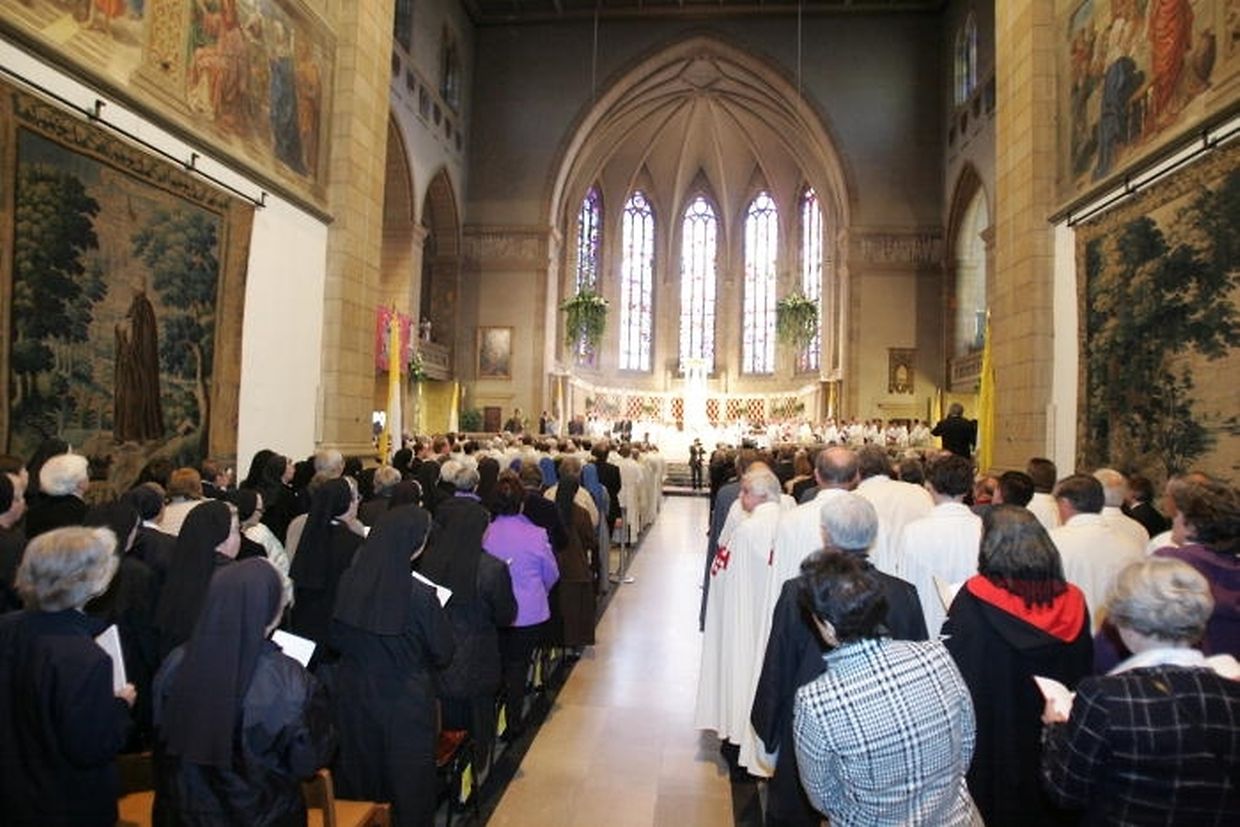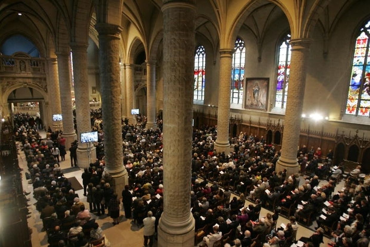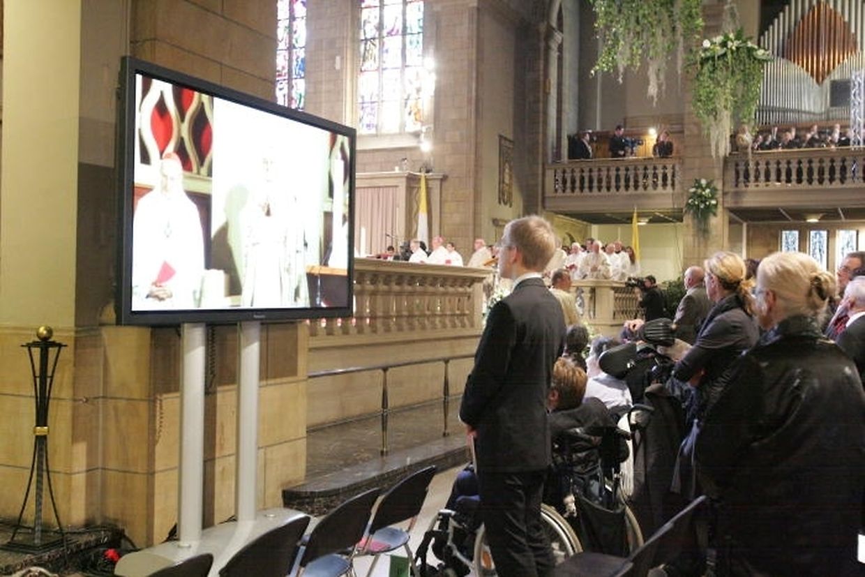 Weil die Kathedrale bis auf den letzten Platz gefüllt war, wurde die Weihe auf der Place Clairefontaine auf einem riesigen Bildschirm live übertragen.