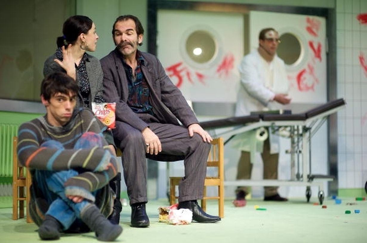 Nous ne sommes plus au théâtre, nous sommes dans le salon ou la cuisine d’une de ces « ménagères de moins de cinquante ans » fascinées, all over the world, jour après jour, par ces soap-operas, ces feuilletons qui, entre deux tunnels de publicités, développent en d’éternels épisodes leurs intrigues sentimentales perpétuellement rebondissantes. Quoique! Les premiers patients entrent : une mère et son fils de huit ans. Et tout bascule dans le délire: le grand-père est-il mort ou non ? Henrik est-il le père de cet enfant-là ? Quelles relations le grand-père entretient-il avec sa fille et son petit-fils ? Celui-ci pourra-t-il épouser l’infirmière ? Mais pourquoi soudain ce couteau entre les mains de l’enfant ?