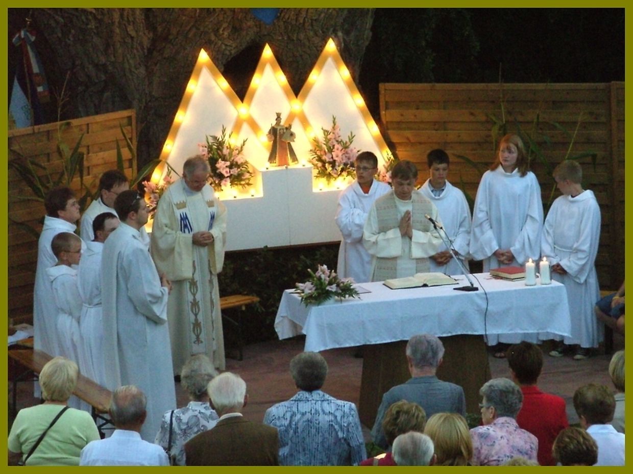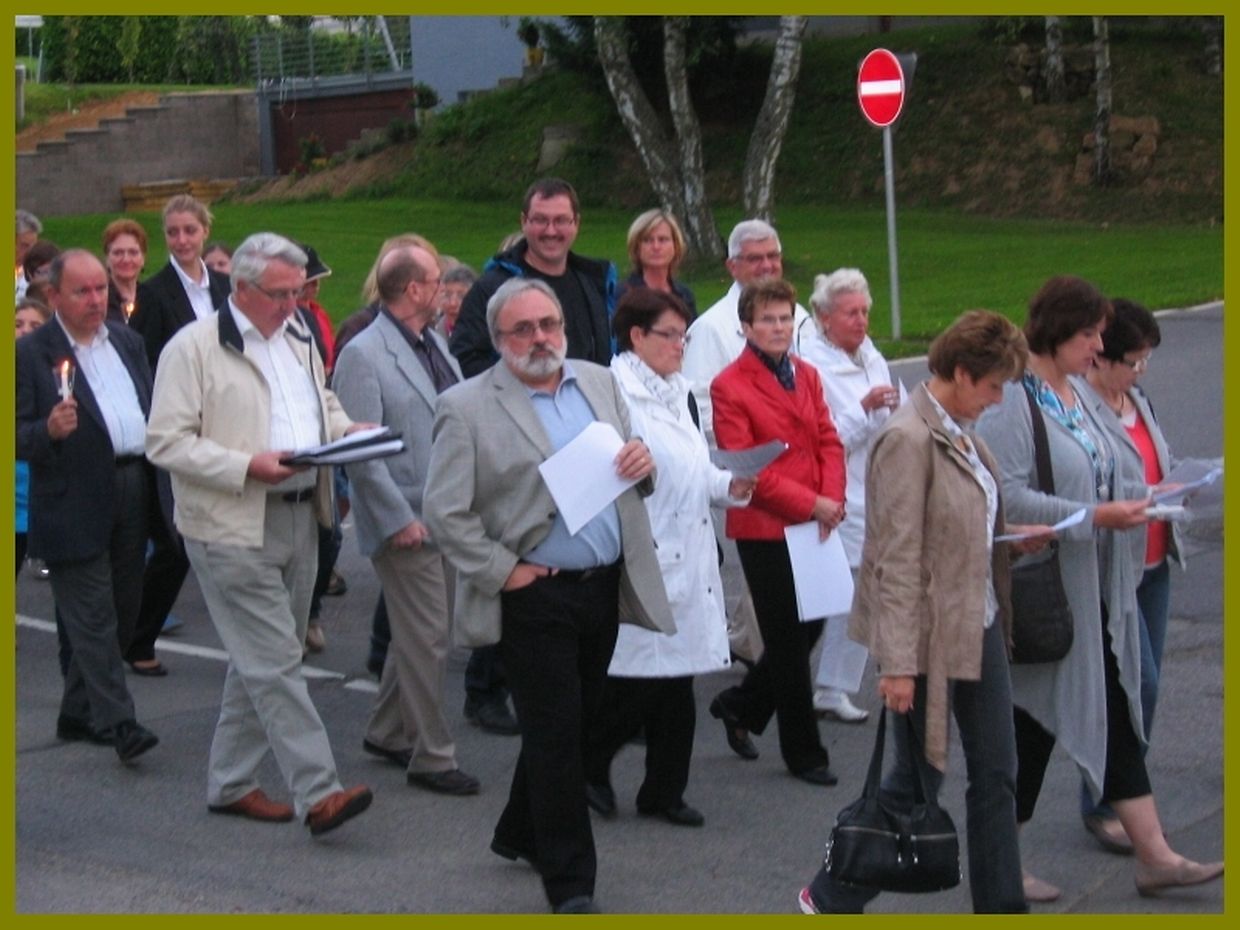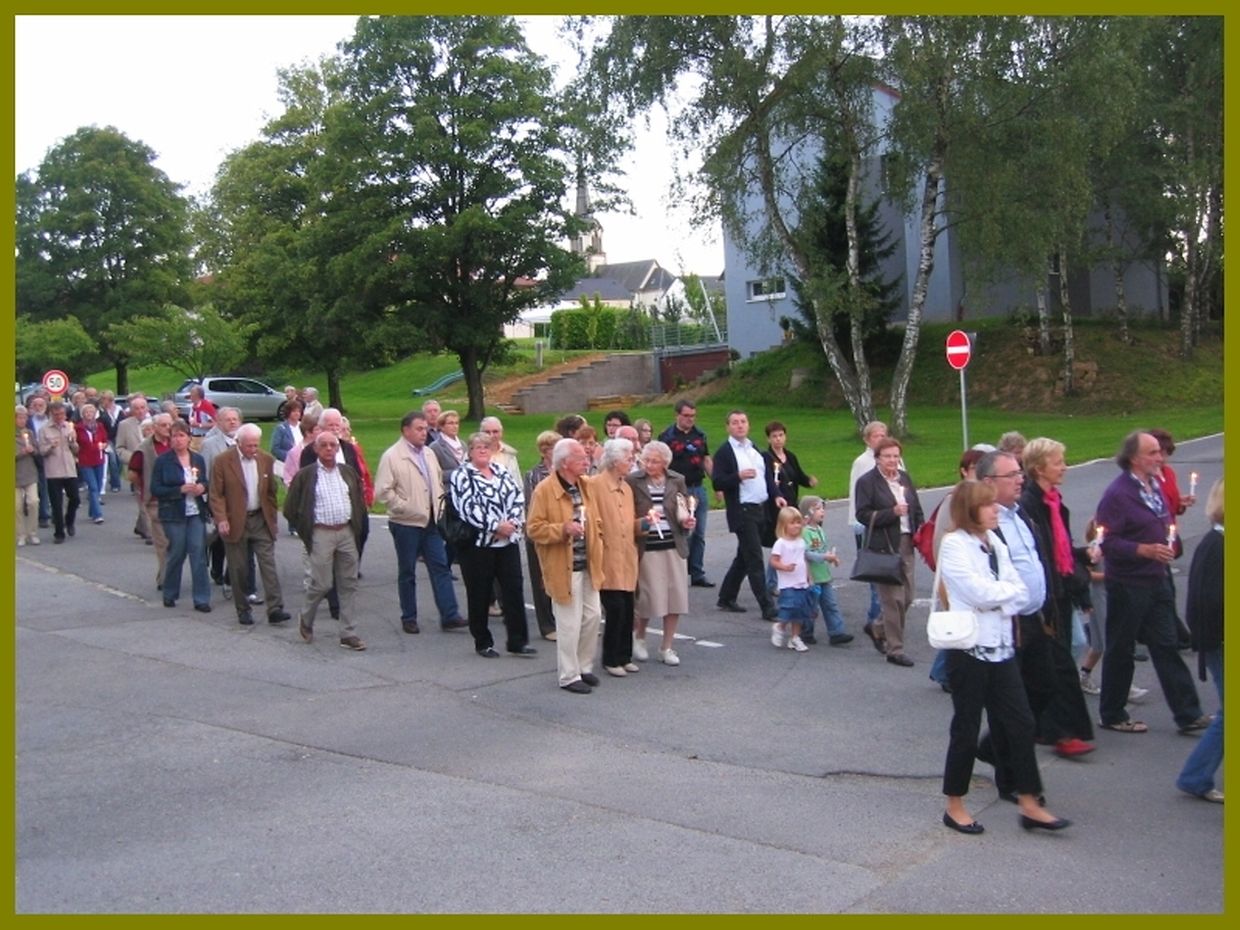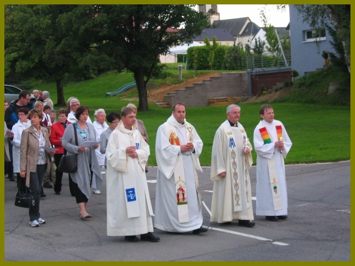 Nodém d'Leit hir Kärz ofgeholl haten sen se am Cortège zesummen mat dem Klerus, der Musek an der Chorale bei d'Bildchen gaangen wou eng feierlech Mass zélébréiert gouf