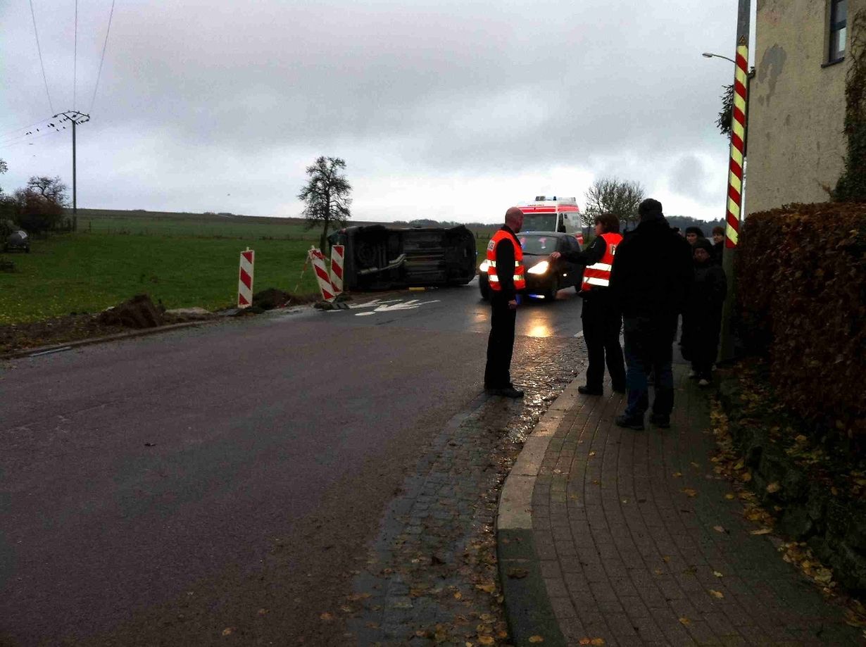 Auf der viel befahrenen Strecke Mersch-Fels kam es gegen 8 Uhr am Dienstag morgen auf der durch Hinweisschilder unübersichtigen Hauptkreuzung in Angelsberg zu einem Zusammenstoss zweier Autos, wobei sich eines überschlug.