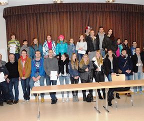 Administration Communale De Lenningen Ehrung von verdienstvollen Schülern, Studenten, Musikschülern, jungen Feuerwehleuten, individuellen Sportlern und lokalen Sportvereinen