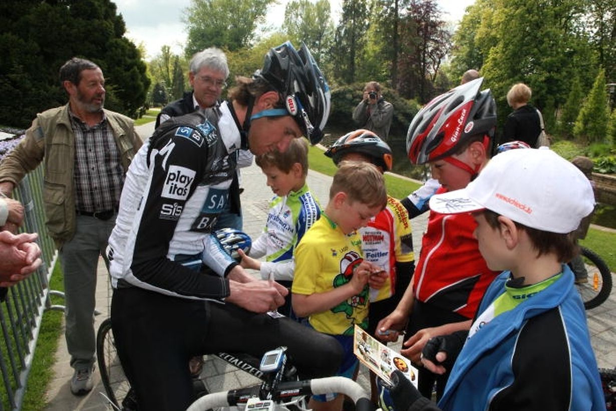 Die Begeisterung bei Jung und Alt war riesengroß, da Fränk Schleck den ganzen Nachmittag über im Mondorfer Park weilte und die Nachwuchsfahrer bei den verschiedenen Rennen begleitete. Der Radsportprofi machte sich außerdem eine Freude daraus, nicht nur alle Autogrammwünsche seiner Fans zu erfüllen, sondern auch bei der Siegerehrung zusammen mit Bürgermeisterin Maggy Nagel die von der Gemeinde Mondorf gestifteten Pokale zu überreichen und jedem Teilnehmer als Erinnerung an diesen schönen Tag ein vom Fanclub Fränk & Andy Schleck gesponsertes T-Shirt überzustreifen. (MBe)