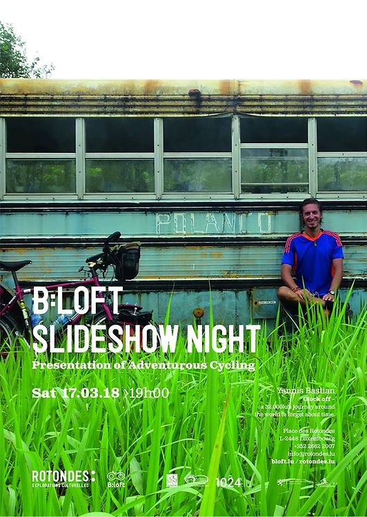 B:loft freut sich, Sie zur Slideshow Night mit Yannis Bastian, einem luxemburgischen Abenteurer, einzuladen. Die Veranstaltung, die am 17. März um 19.00 Uhr in den Rotondes stattfindet, richtet sich nicht nur an Fahrradfreunde, sondern auch an Abenteurer (freier Eintritt).