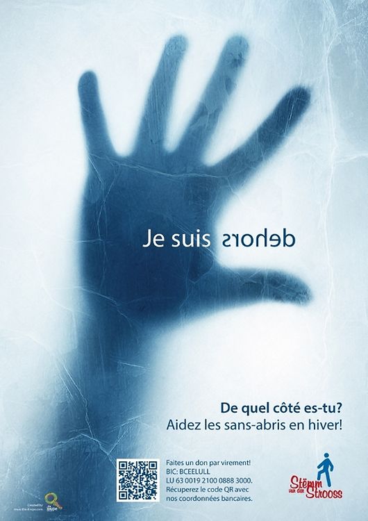 Mit dem Plakat “Je suis dehors” will die Stëmm vun der Strooss die Öffentlichkeit sensibilisieren, darüber nachzudenken, was es heist in der Kälte draussen bleiben zu müssen.