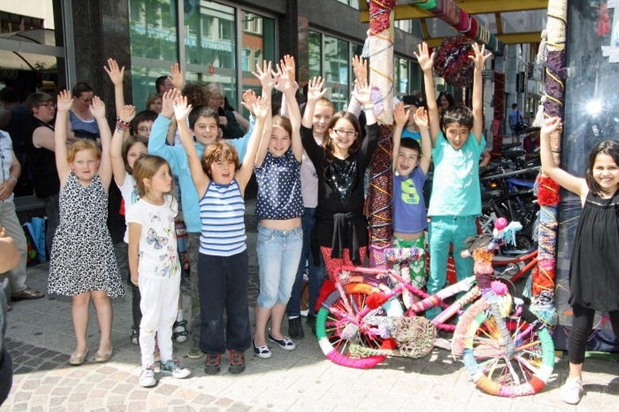 Von November 2012 bis März 2013 strickte und häkelte die Künstlerin Tania Kremer-Sossong mit 60 Schulkindern im Alter zwischen sechs und zwölf Jahren der „Kiem-Schule“ während mehr als 100 Stunden mit dem Ziel, dem Fahrradunterstand in der Avenue de la Gare im hauptstädtischen Bahnhofsviertel ein neues Aussehen zu verpassen „Es ist kein Farbgraffiti, das über längere Zeit bleibt, sondern ein Graffiti aus Wolle, die sich nach und nach auflösen wird“ so die Künstlerin. Die Idee stammt aus einer mexikanischen Fabrik, wo Arbeiterinnen plötzlich damit anfingen, die Türklinken mit Wolle zu verschönern. Die Idee schwappte über nach Paris, Berlin, London und Moskau, wo trostlose Ecken auf diese Art verschönert werden. Die Arbeit aus „Wollgraffiti“ soll den Passanten ein Lächeln entlocken. Vor einigen Tagen wurde der „gestrickte und gehäkelte Fahrradunterstand“ in Gegenwart der Schulkinder, des Lehrpersonals und der Gemeindeautoritäten offiziell eingeweiht. (Text/Foto: Gilbert Linster)