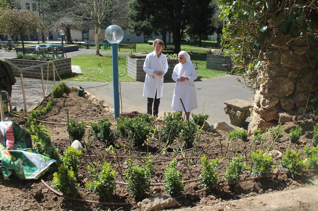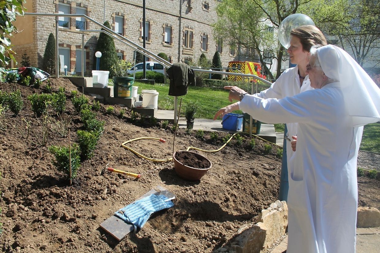 A l'espace vert de la 'Zithaklinik', là, où des patients réapprennent à marcher avec leur kinésithérapeute, là où on peut savourer les rayons de soleil au coeur de la clinique, un nouveau jardin des roses est né. Un 'Z' en buis, orné de rosiers, sponsorisé par les médecins. Soeur Hildegunde s'est bien occupée de la plantation.