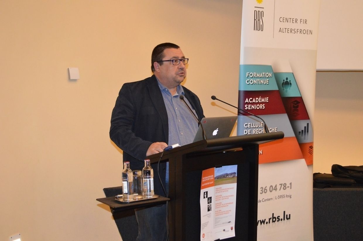 Den Auftakt machte am 3. Mai 2016 ein Vortrag mit anschließender Podiumsdiskussion im hauptstädtischen „Cercle Cité“. Gastredner Prof. Dominique Verté von der Université Libre in Brüssel stellte dabei die momentan europaweit diskutierte Frage: „Comment faire mieux avec moins de ressources?“ Insgesamt sei die Tendenz zu bemerken, so Verté weiter, dass sich die Gesellschaft weg von einer globalen hin zu einer individuellen Absicherung entwickele, in der der Einzelne mehr Verantwortung für sein Alter und Altern übernehmen müsse. Was aber tun mit Menschen, die aus finanziellen, krankheits- oder suchtbedingten Gründen dazu nicht in der Lage sind? Ein Problem, das sich momentan in Luxemburg vielleicht noch nicht mit voller Brisanz zeigt, aber in Zukunft an Bedeutung gewinnen wird, da auch hier z.B. die Anzahl an finanziell schlechter gestellten Alleinerziehenden steigt.